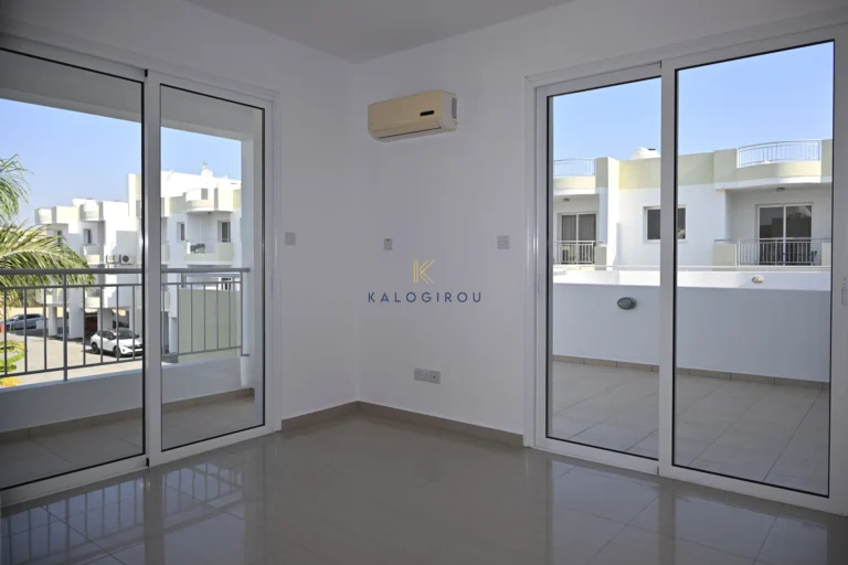 Apartment for sale in Makenzy area, Larnaca. The property consists of 2 bedroom, open plan kitchen, living room, 1 bathroom, 1 shower, 2wc, covered verandas, covered parking, fully furnished, A/C, electrical appliances and common swimming pool.