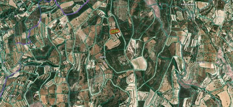 The asset is a field in Dora. It is located 600m from the road Kidasi – Agios Georgios and 2.5km from the village centre. It has an area of 42,476sqm. It benefits from a road frontage of 180m along its eastern border.