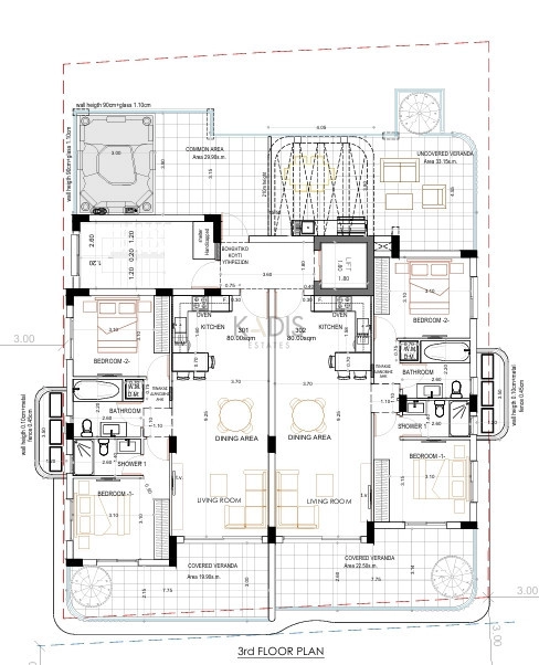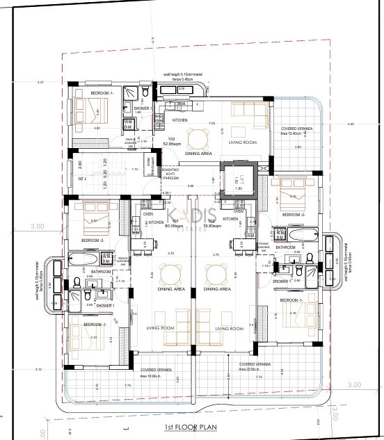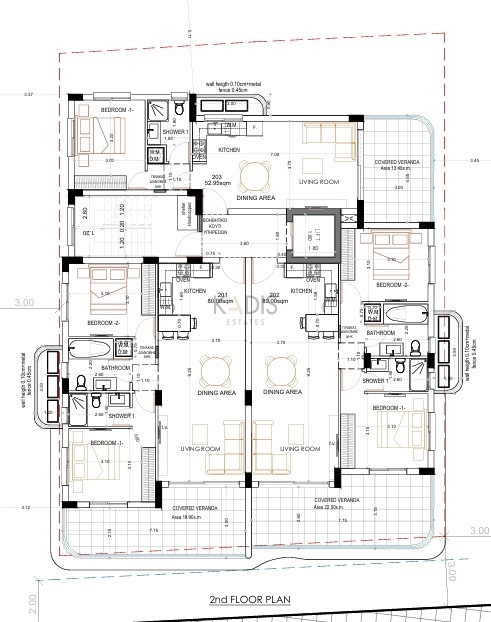 Apartment for sale in Larnaca, Debenhams area. The property consists of 2 bedrooms, open plan kitchen, living room, 1 bath, 1 shower en-suite, 2WC, covered parking, storage room and 19 sq. m covered veranda.
