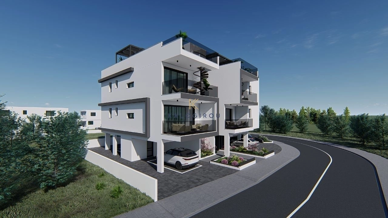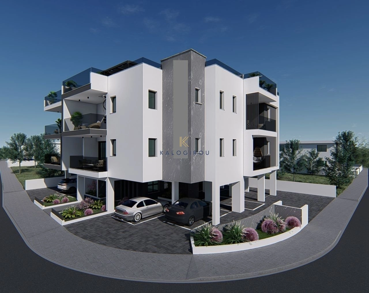 Apartment for Sale in Livadia area, Larnaca. This beautiful apartment consists of an open plan kitchen and living room with dining area, two bedrooms, en suite shower, one common bathroom, a private roof garden area, provision for A/C, storage room and covered parking. The area of the property is characterized as residential, quiet and family orientated.