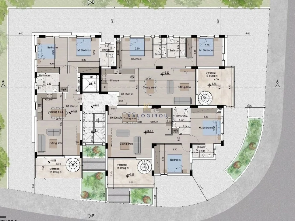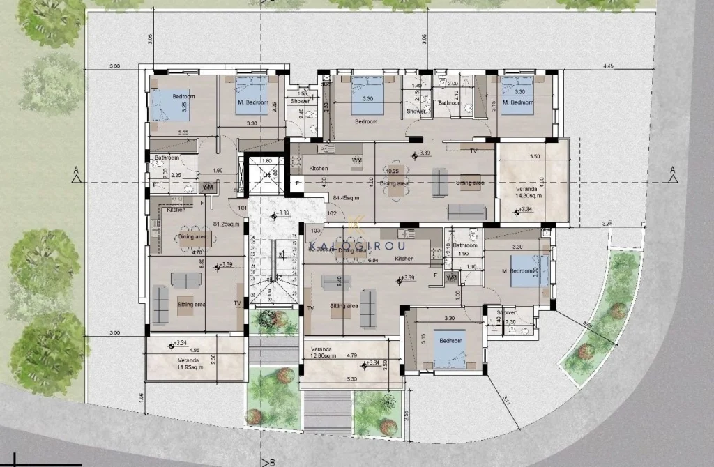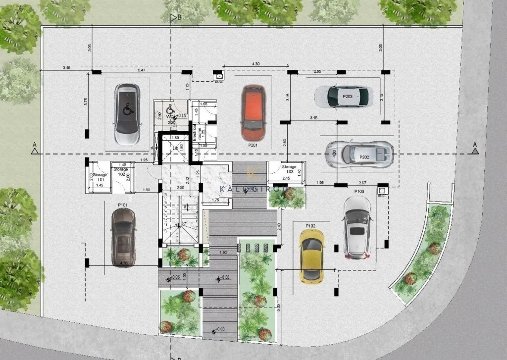 This amazing project has six apartments in total, three apartments on the first floor and three apartments on the second floor. Each apartment has a private covered parking on the ground floor and private area on the Roof Garden.