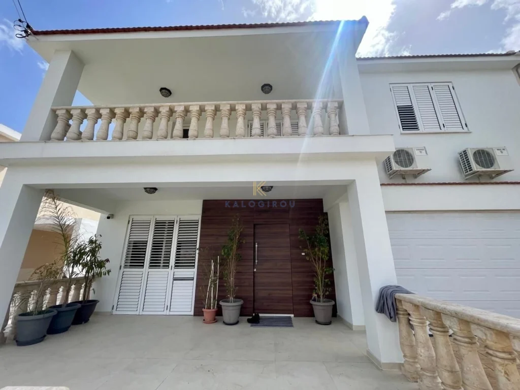 House for Sale in Oroklini area, Larnaca. The property is fully furnished and consists of an open plan kitchen, living and dining area, A/C, electrical appliances, fire place, a guest’s toilet and a laundry room on the ground floor. On the first floor there are four bedrooms, one shower en suite, one common bath, 2w and there is also an attic. Externally there is a garage, BBQ area, storage room and a nice garden.
