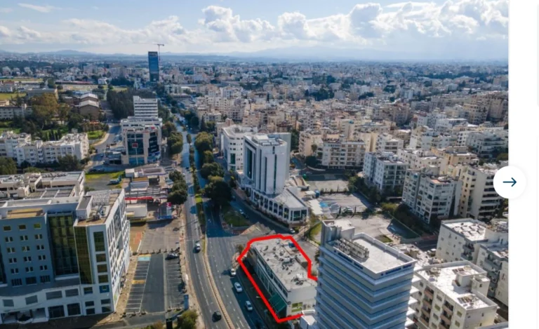 The property is a six-storey commercial building in Agioi Omologites, Nicosia municipality. The ground floor consists of a retail store with a mezzanine. The upper five floors are similar each consisting of office space, a kitchenette and toilets. The building has a covered area of 1,060sqm, covered verandas of 94sqm, a mezzanine of 117sqm, uncovered verandas of 64sqm and a basement of 359sqm used as parking space and storage. It is built within a plot with an area of 607sqm.