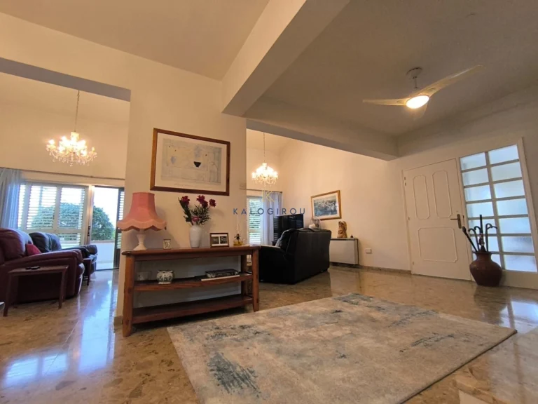 House for sale in Larnaca, Drosia Area. The ground floor includes an open plan living room and dining area, a sitting area with fireplace, separate kitchen with a second small dining area, guest toilet, combined kitchenette and laundry room and covered and uncovered verandas. In addition, inside the garden, there is another smaller house that consists of an open plan kitchen and dining area, a small sitting room, one WC with shower and one bedroom. The first floor consists of 3 bedrooms, a bathroom, small sitting area, kitchenette, covered and uncovered verandas.