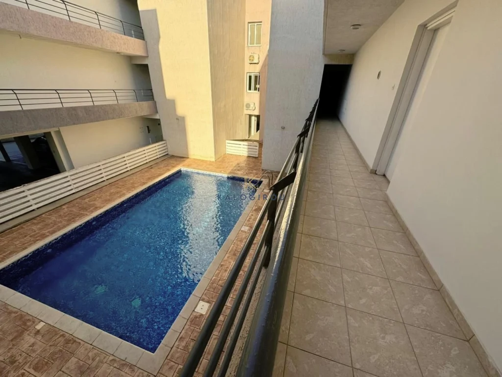 Apartment for Sale in Livadia area, Larnaca. This beautiful apartment has internal covered area of 79 sq.m and is situated on the first floor. It consists of an open plan kitchen, living and dining area, electrical appliances, A/C, two bedrooms, one common bathroom with wc, 9 sq.m covered balcony, common swimming pool and a garage.