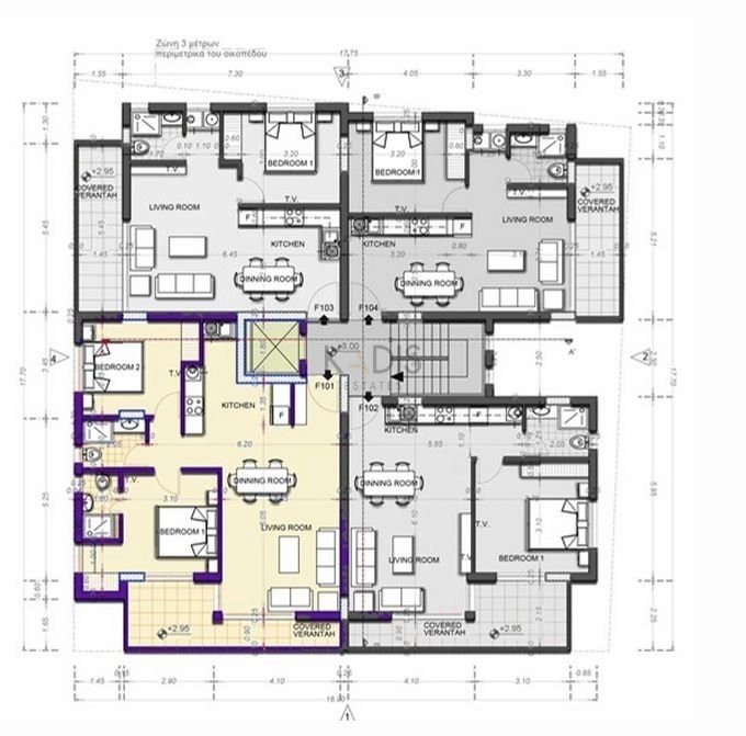 The project is a residential 4-story building consisting of 8 luxury 2-bedroom apartments. On 4th floor, there are two apartments, each one with an exclusive right of use of a room garden. The building is in an excellent location next to a green area in a quiet residential location, yet very close to Larnaca town center and less thank 2km from the Mall of Larnaca.