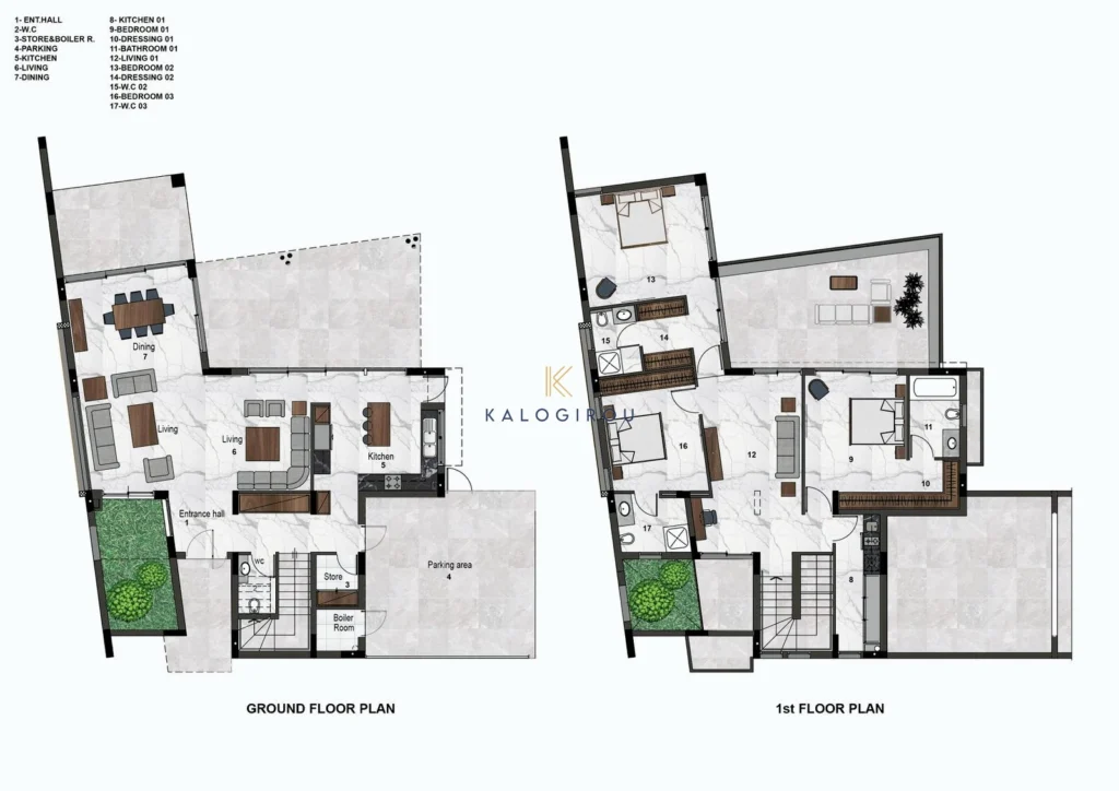 Double Storey Modern House for sale in Larnaca, Pervolia area. The ground floor consists of an open plan space of kitchen with living and dining area area, guest toilet, storage room and boiler room. The first floor comprises of three bedrooms, each bedroom has en suite shower with wc. Also, the first floor has a kitchenette and space of sitting area. Externally there is a spacious garden area with private swimming pool.