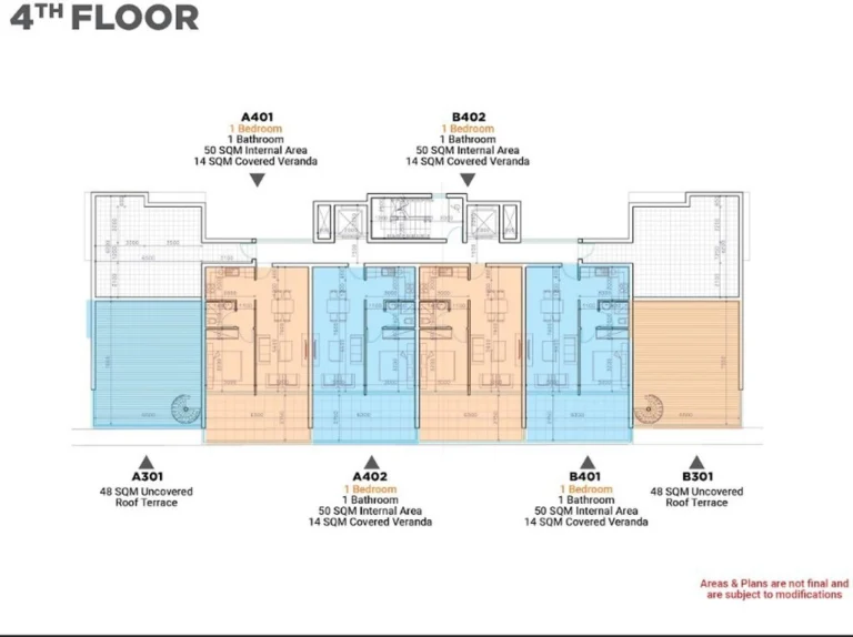 Top Floor Apartment with roof Garden for sale in Larnaca, Mc Donald Drive Thru area. The apartment is on the fourth floor, consists of an open plan kitchen, living and dining room, two bedrooms, master bedroom is en suite with shower and wc, a main bathroom with wc, covered veranda, uncovered veranda and a spacious roof garden. The property has also right of use to a parking spot.