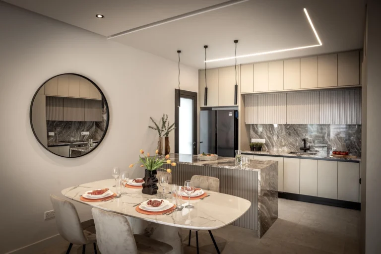 The project boasts 5 residential buildings with 9 apartments each. Comprising two and three bedrooms apartments and penthouses with parking spot for each with electrical gate, remote access control and storage. The modern design makes excellent use of features like top quality ceramic finish, unique balconies and clever layout of living areas designed to offer optional space and privacy. You can enjoy swimming pool, children playground, indoor gym and beautiful landscaped paths throughout the buildings.