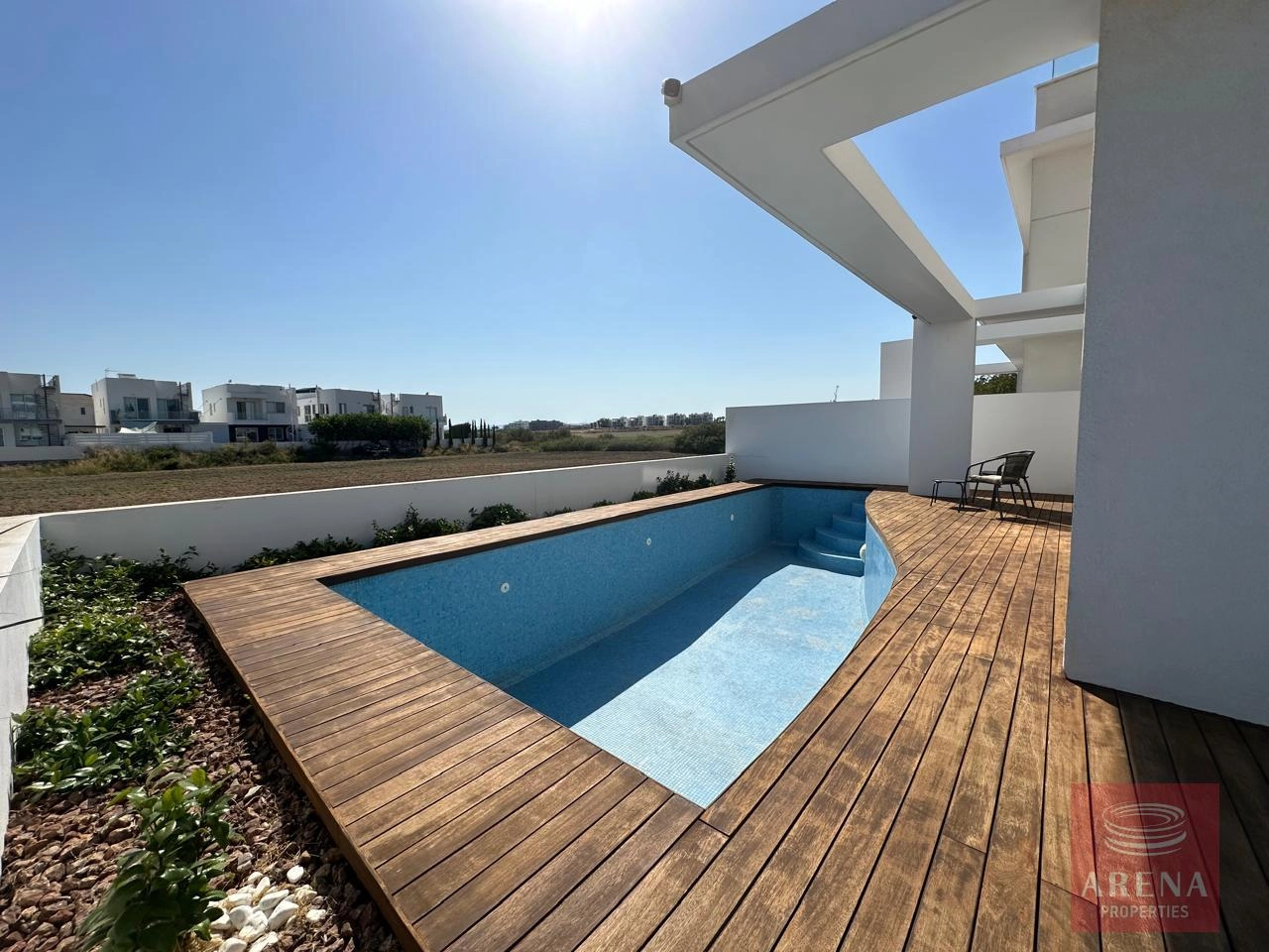 Outside the house, there is a nice territory with a garden, private swimming pool, and covered parking area.