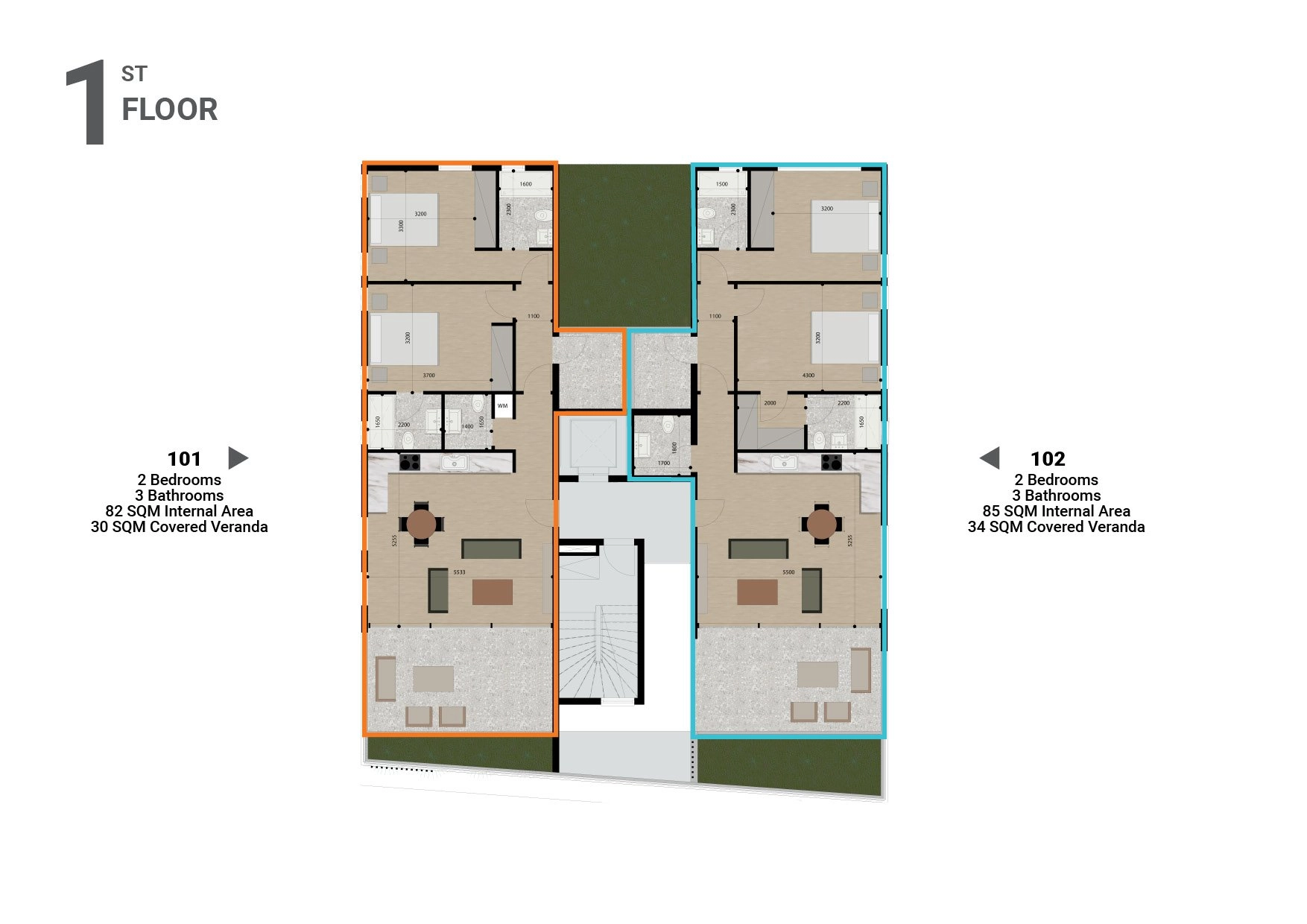 The master bedroom comes with its own en-suite bathroom, while the second bedroom provides flexibility for children, guests, or home office use. High-quality finishes and modern details ensure both elegance and long-lasting value.