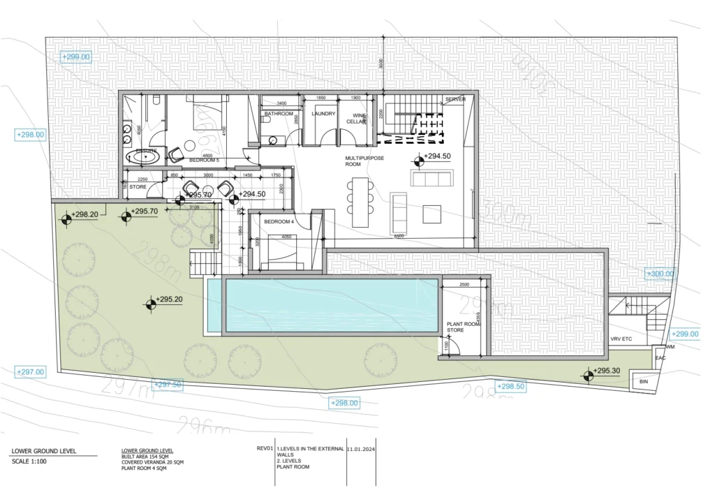The living, dining, and kitchen areas are designed with a focus on spaciousness, allowing for comfortable and stylish entertaining. Outdoor enthusiasts will appreciate the inclusion of an outdoor kitchen and barbecue area. Practical features such as a laundry area, storage area, and plant room add convenience to daily living.