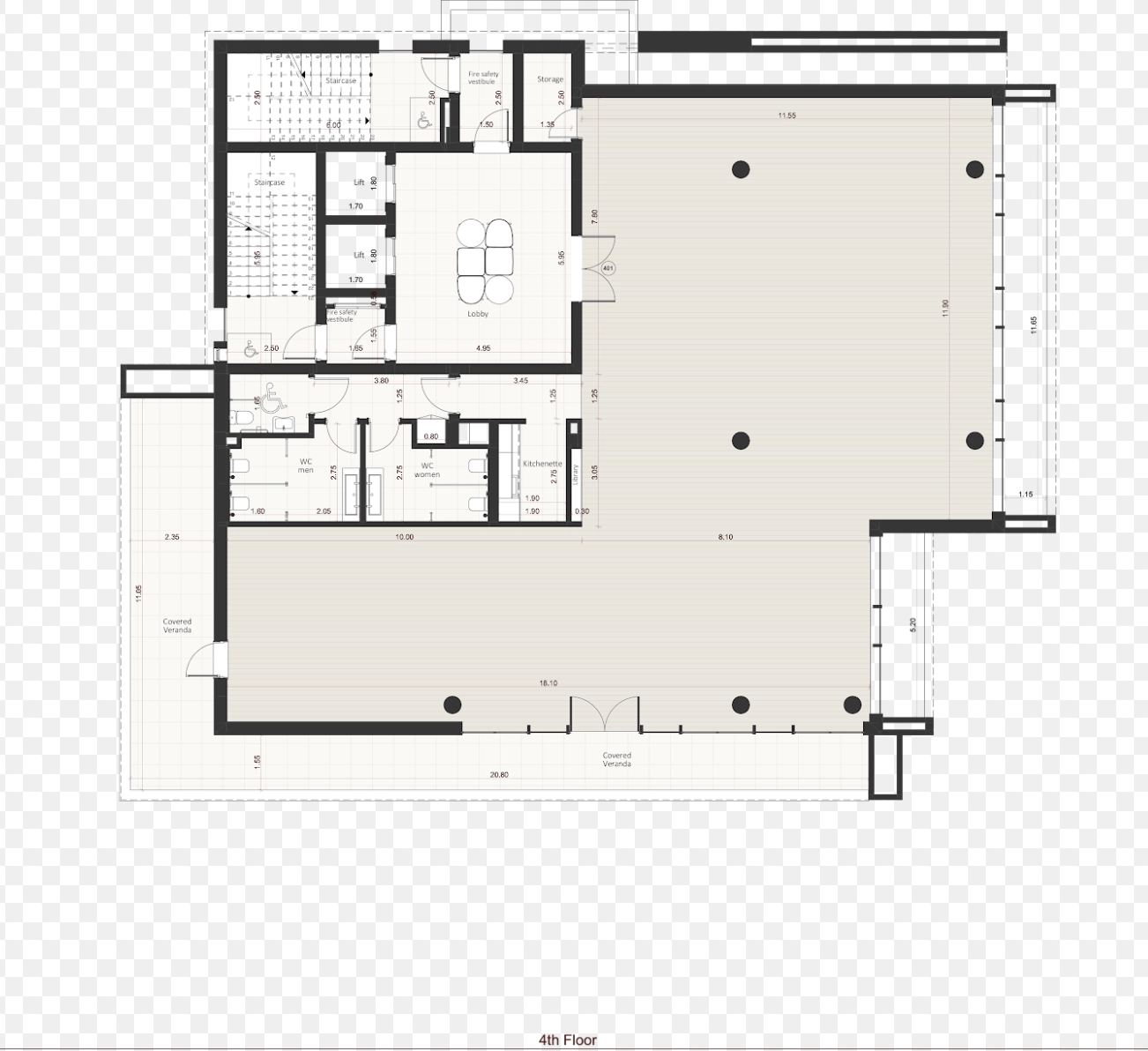 • Covered Veranda: 105 m²