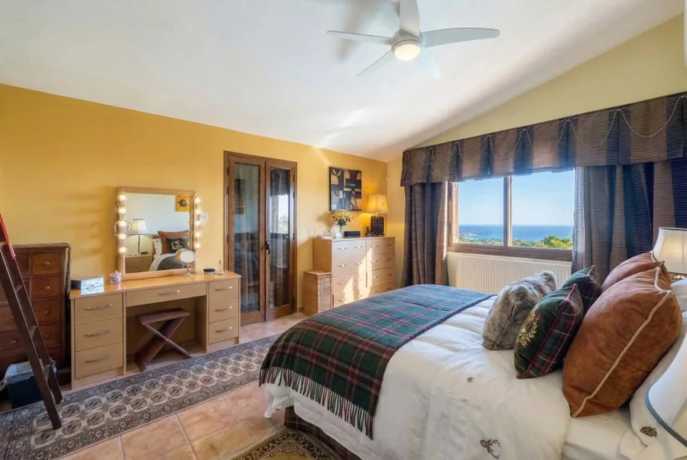 The property’s four bedrooms, two of which are en-suite, are located upstairs.  There are three double bedrooms with balconies offering spectacular sea views, and a twin bedroom that overlooks the garden. A shared bathroom completes this level.