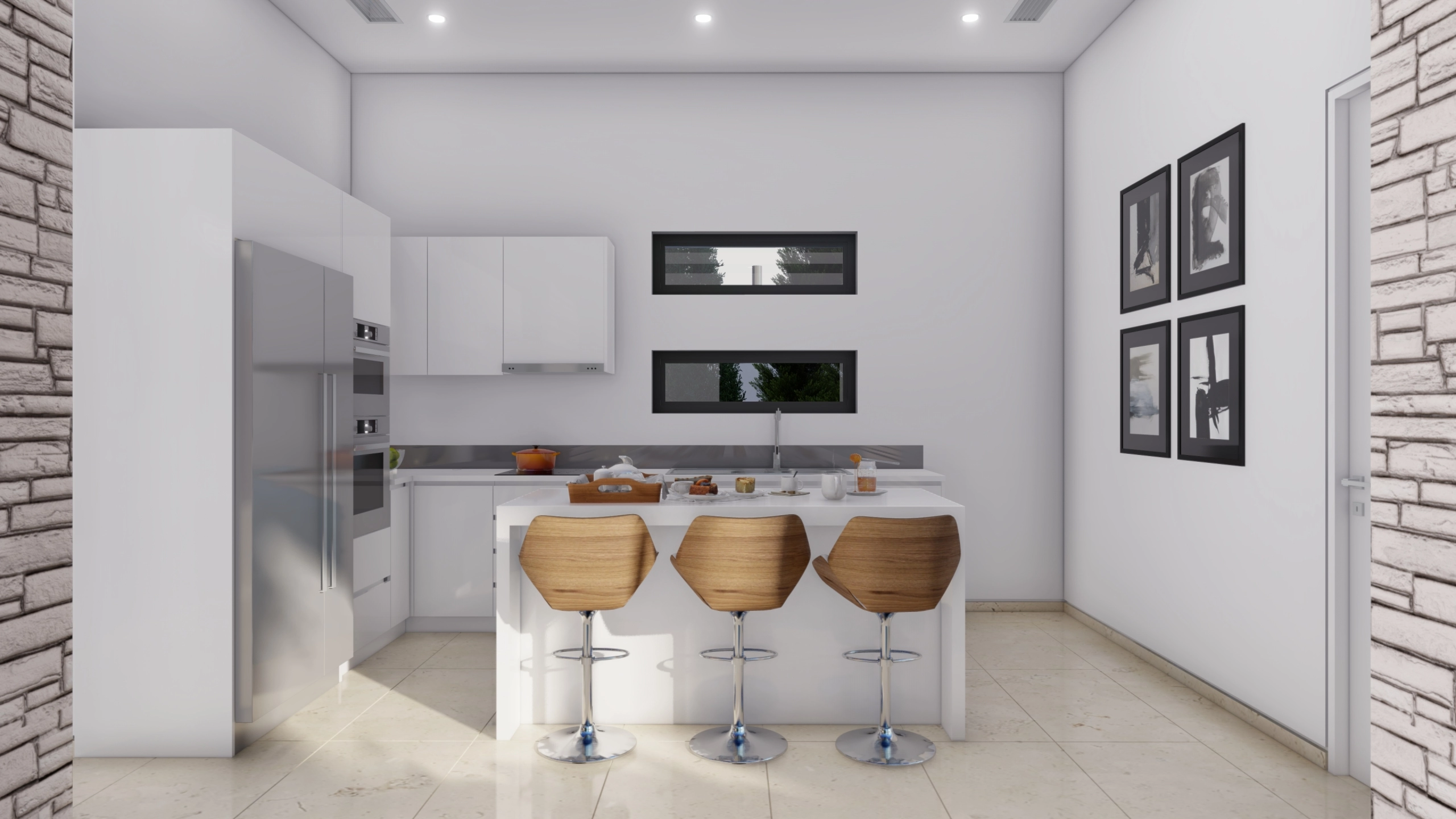The ground floor has an open plan layout with living, dining and kitchen areas. The stylish kitchen comes complete with modern appliances and ample worktop and cupboard space. The property has been designed to take full advantage of its impressive location, with floor to ceiling doors and windows on both floors that provide mesmerizing views of the coastline. The first en-suite bedroom can also be found on this floor, alongside a guest toilet.