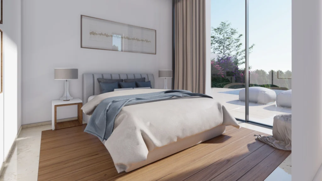 The outside of the villa is dominated by an overflow swimming pool, with covered and uncovered terraces that are perfect for al fresco dining or soaking up the glorious Cyprus sunshine. In addition, residents also have access to a the clubhouse and 5* facilities from the neighbouring exclusive seafront resort.