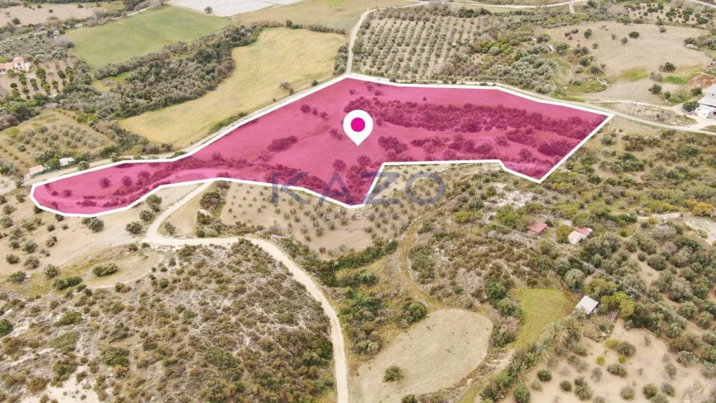 Agricultural field covers a total land area of 23.412 sq.m. Access to the property is provided via an asphalt road, which, based on the official land plan, is in the process of being registered. The surface of the field is even and it has irregular shape. The property located 3.5 from Agio Theodoro and 1.25 from Maroni village. The property falls within Zone Γ3, with a building coefficient of 10%, coverage of 10%, and permission for 2 floors (8,3m) of construction.