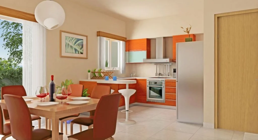 The villa features a master bedroom with an ensuite bathroom, an additional WC, and two more bathrooms. It also includes large tiled balconies and verandas, perfect for relaxing and entertaining. The living area is enhanced by an elegant stonework fireplace, adding warmth and charm. Other features include a private parking area, a private garden, and ample storage space. For those seeking extra luxury, there is an option to include a private swimming pool. Additionally, the villa comes with pergolas that provide shaded outdoor areas for leisure and enjoyment.