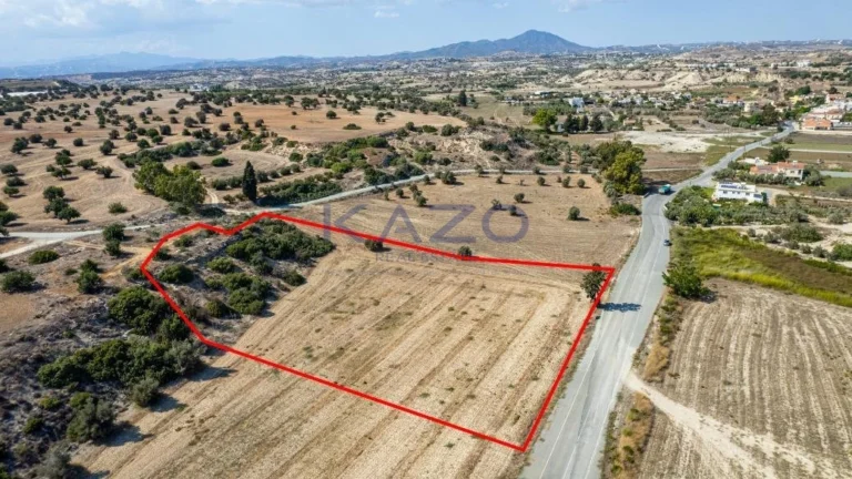 The property is a residential field in Mazotos. It is located 500m from Mazotos village center and 1.7km from the sea. It has an area of 8,362sqm and benefits from a large road frontage of 85m. The field offers close proximity to amenities such as a school, retail stores, supermarkets and the Camel Park.