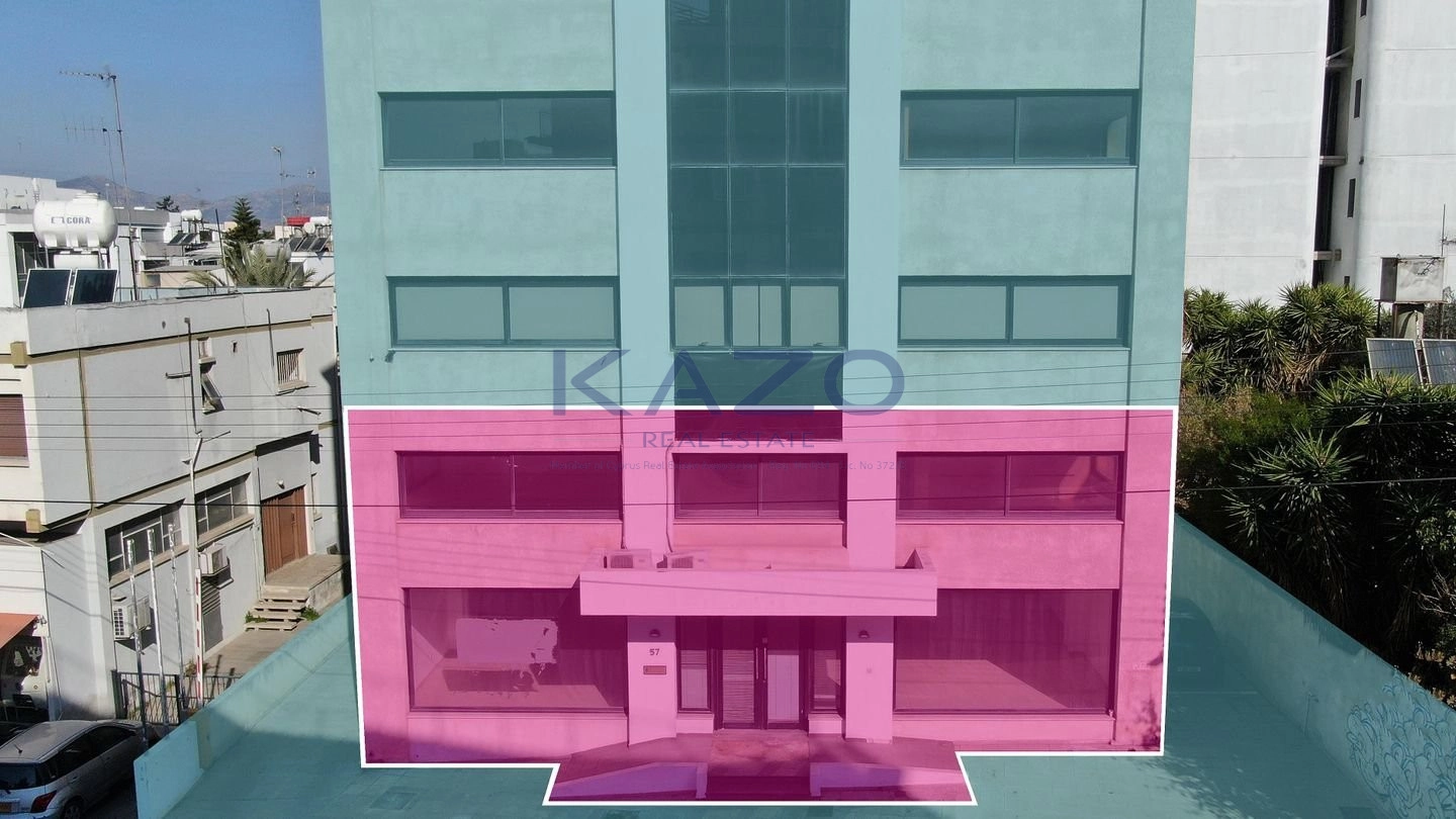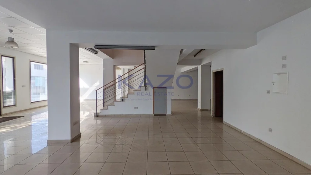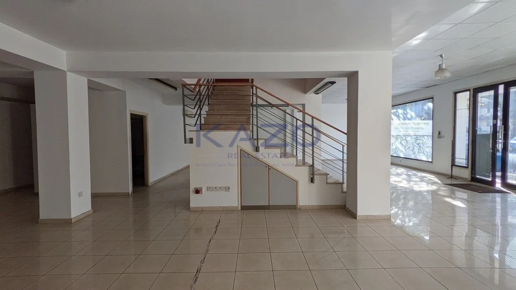Versatile Ground-Floor Retail & Office Mezzanine in the Heart of Panagia Quarter Position your business in one of Nicosia’s most strategic locations with this spacious, full-floor commercial unit situated on Larnacos Avenue. Located just southeast of the Digeni Akriti–Larnacos junction, this highly visible property offers exceptional accessibility and a professional setting ideal for retail, showroom, or office use. Property Overview This two-level unit is part of a well-maintained mixed-use building and offers a functional layout designed to support a variety of business operations: • Ground Floor (200 sq.m.): Features a welcoming reception area and a large open-plan showroom ideal for customer-facing activity. • Mezzanine Level (136 sq.m.): Includes office spaces, a kitchenette, two restrooms, and a dedicated storage area—perfect for internal operations or team workspace. Energy Category: D
