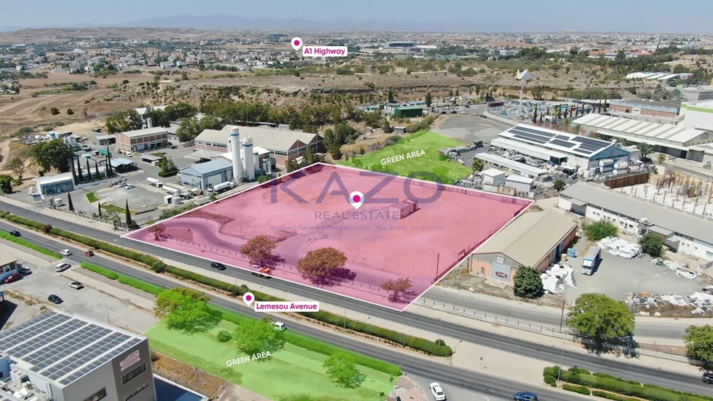 An excellent development opportunity in a well proportioned industrial plot, extending to about 6.762 sq.m. The asset is situated on a high traffic Avenue, Lemesou Avenue Latsia, is surrounded mainly by large commercial and industrial units and offers a wide frontage of about 86m. Additionally, it is situated within close proximity to the Mall of Cyprus, the Nicosia general hospital and the motorway. The property was subjected to a compulsory purchase order for road network of approximately 2.457 sq.m., for public green area of approximately 1.419 sq.m., resulting in a total net area of approximately 6,762 sq.m. The property falls within Zone Βα3/Βε1, with a building coefficient of 100%, coverage of 50%, and permission for 2 floors of construction. This zone, and subject to acquiring the necessary permits, allows the development, amongst others, of: Warehouses Distribution centers Office spaces Product exhibition areas including large products such as cars, electrical appliances or mechanical equipment Stores for home, garden and DIY