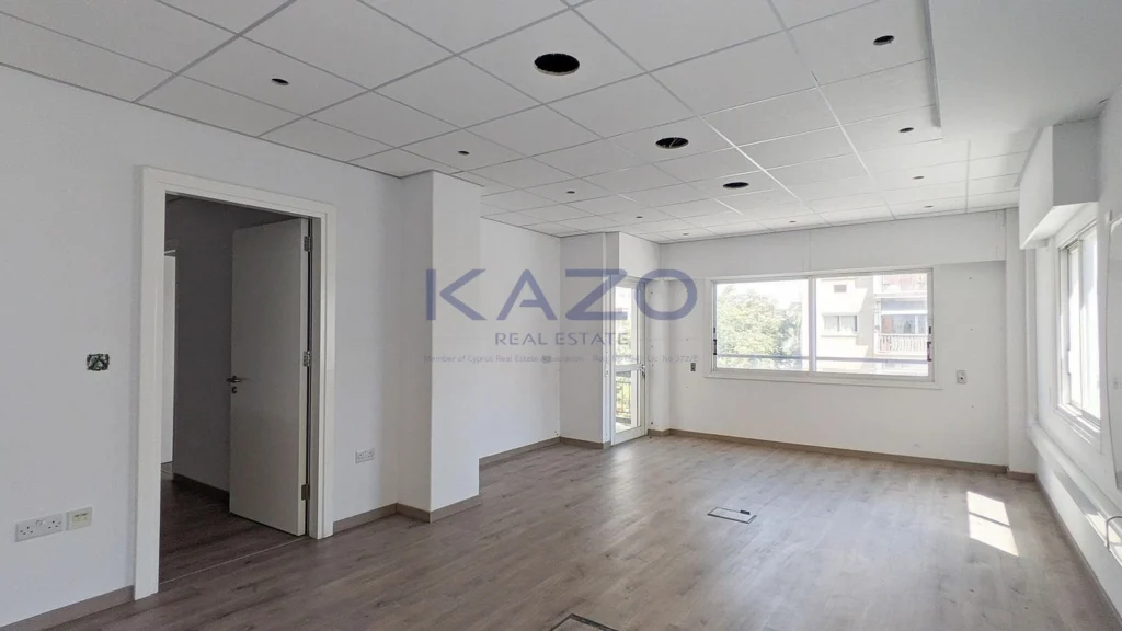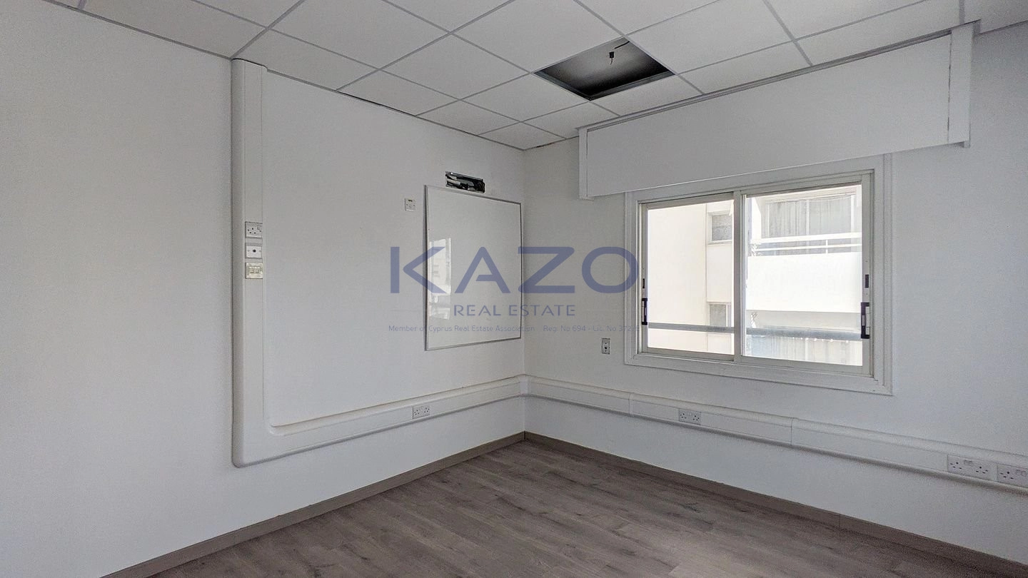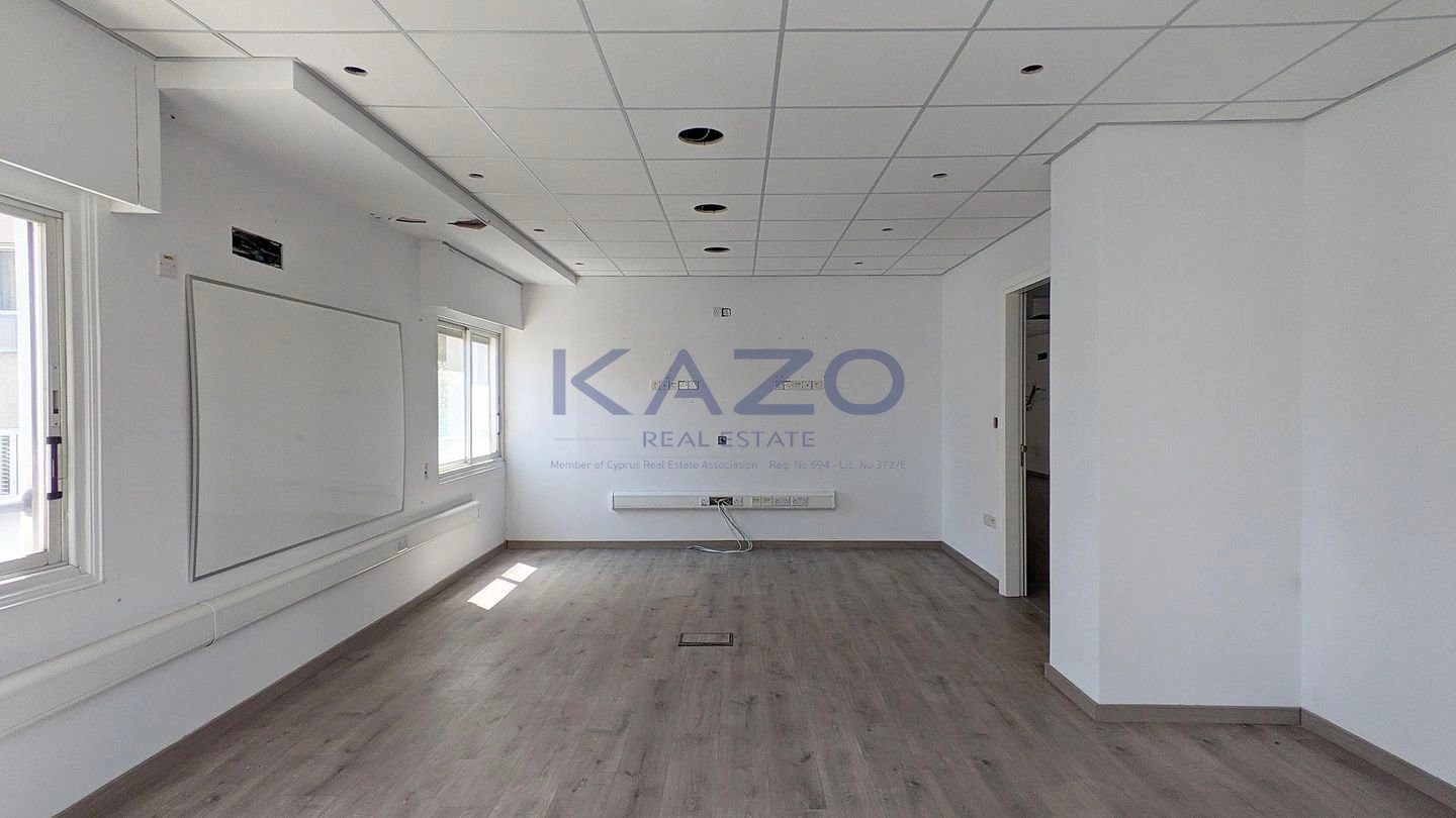The property is located within the administrative boundaries of Nicosia Municipality, in Agioi Omologites Quarter. It is located at a distance of about 225 meters south of the intersection of traffic lights on Demosthenis Severis and Georgios Grivas Digenis Avenue. The office consists of an open office area with desks, two conference rooms, kitchen, four toilets and three covered verandas. The building comprises of 9 floors with a mezzanine. Energy Category: C