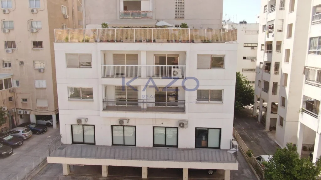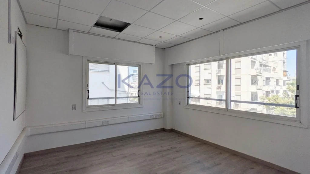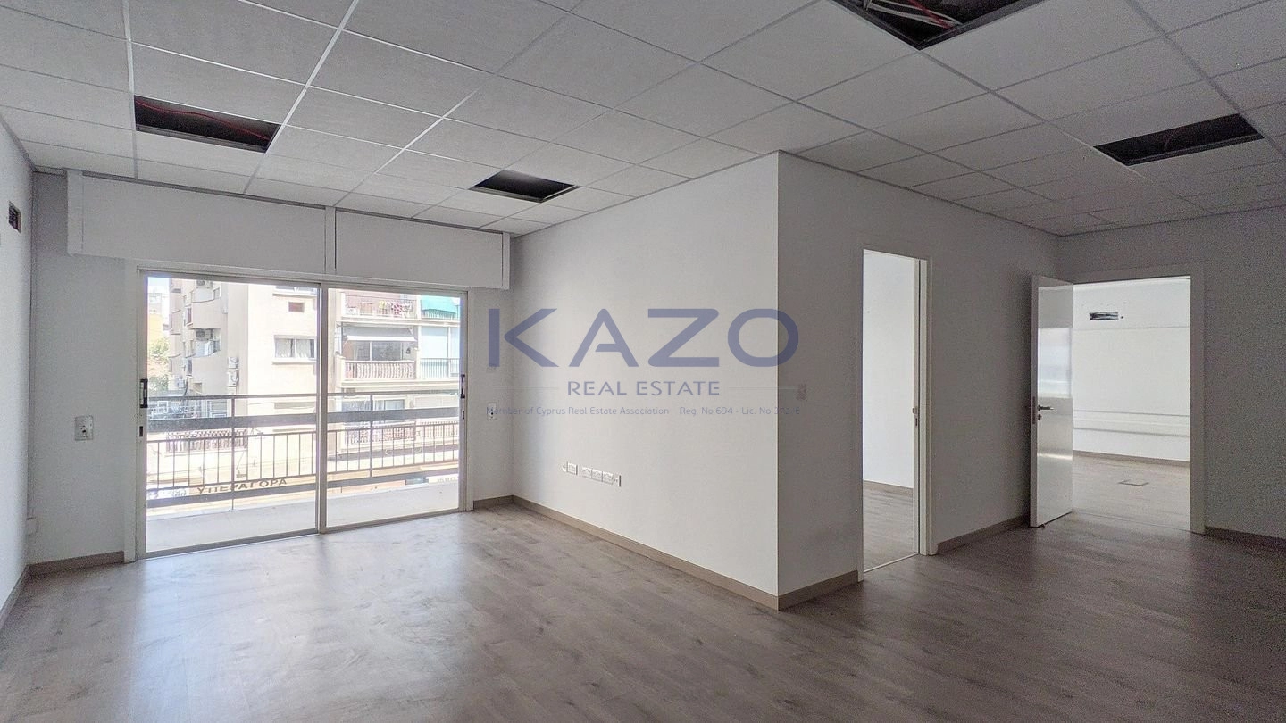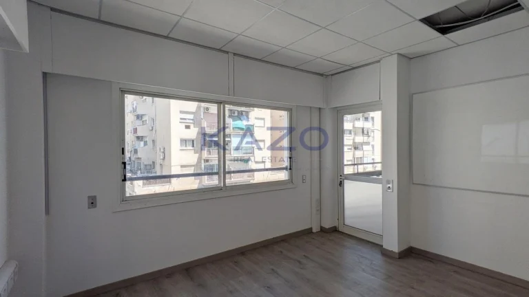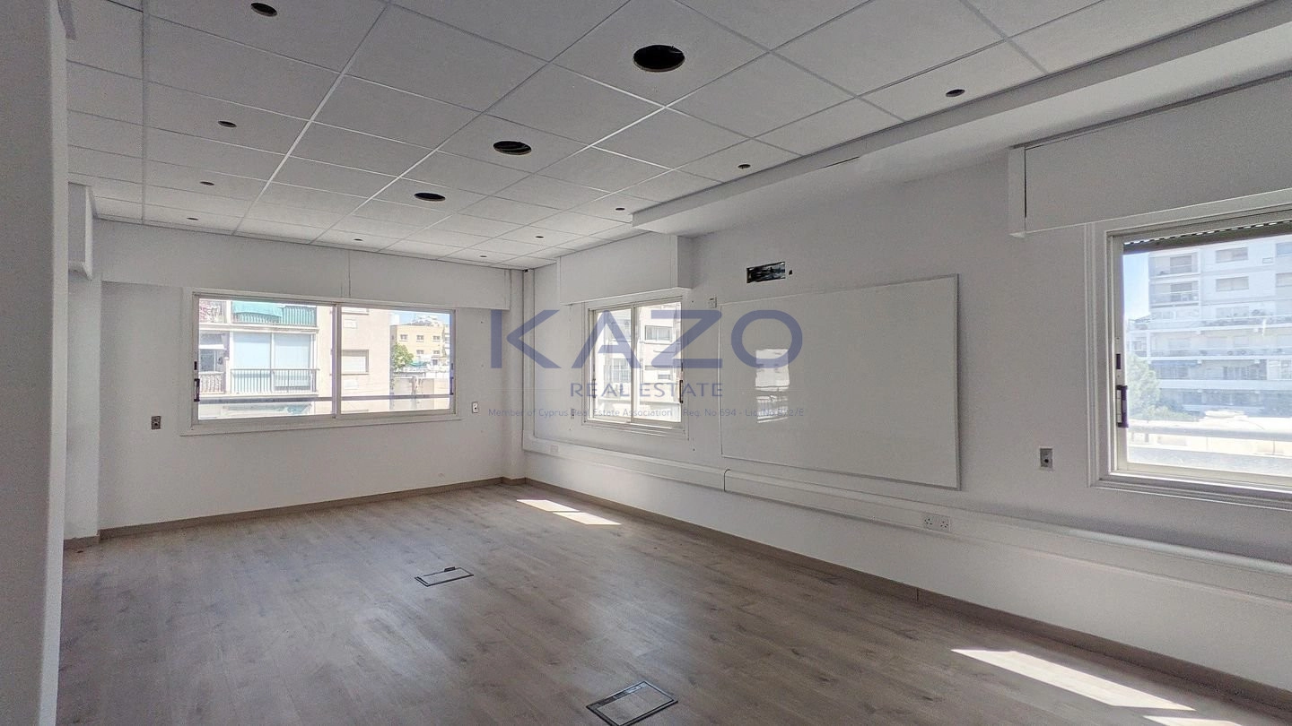 The property is located within the administrative boundaries of Nicosia Municipality, in Agioi Omologites Quarter. It is located at a distance of about 225 meters south of the intersection of traffic lights on Demosthenis Severis and Georgios Grivas Digenis Avenue. The office consists of an open office area with desks, two conference rooms, kitchen, four toilets and three covered verandas. The building comprises of 9 floors with a mezzanine. Energy Category: C