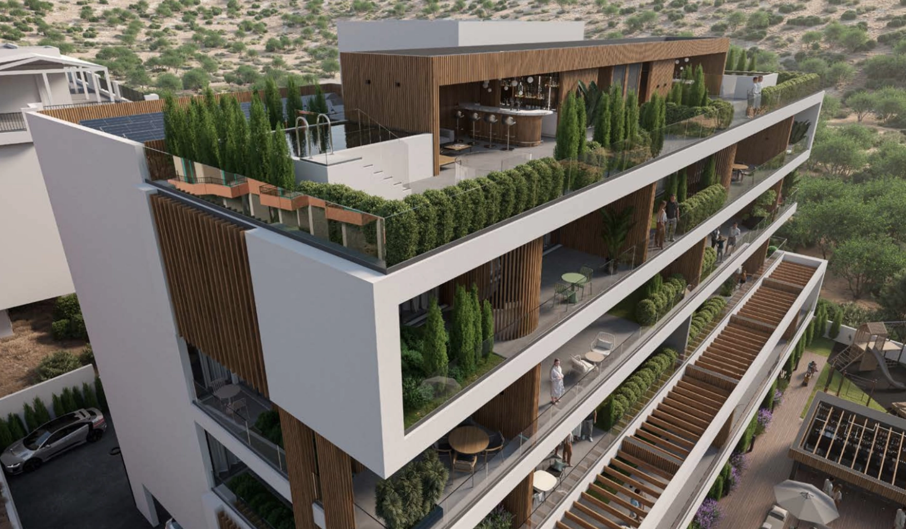 Communal pool, BBQ and entertainment terrace, children’s playground