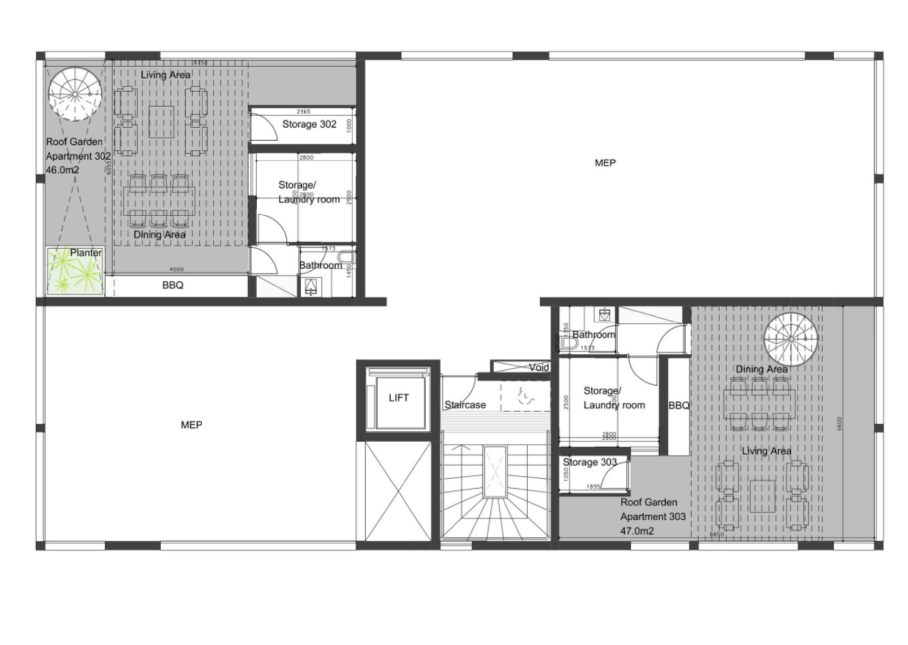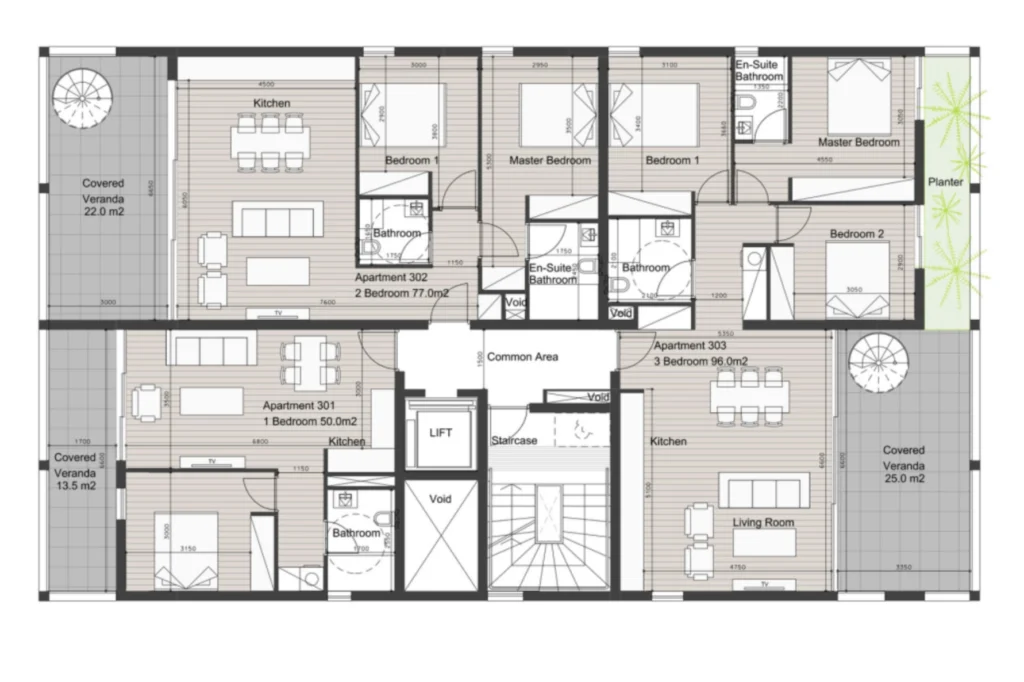 The three-bedroom apartments are the pinnacle of modern urban living, offering spacious layouts and refined design for families or those who desire more space.