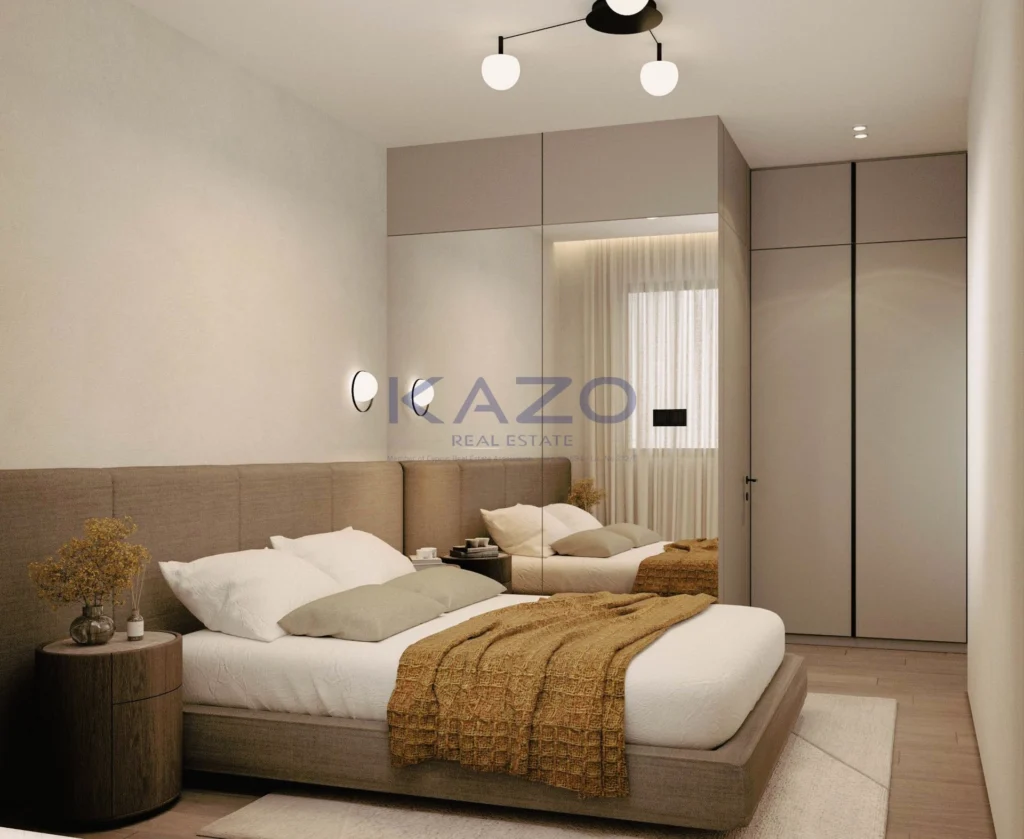 A brand new one bedroom off plan apartment for sale in Agia Zoni. The property consists of 54 sqm covered area, 17 sqm covered veranda. It comprises of a large living room, an open plan kitchen, a bedroom and a shower room. It also comes with one covered parking space and a storage unit.