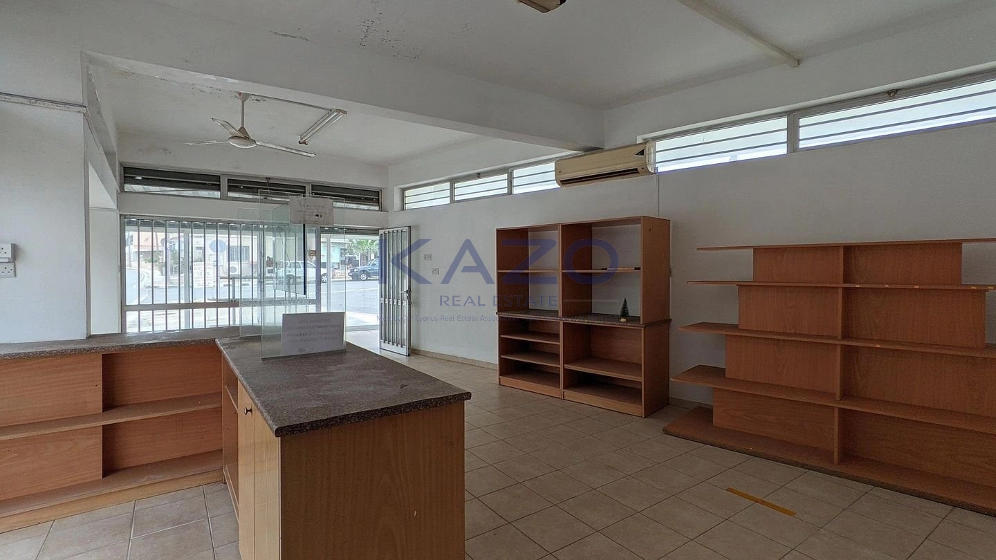 The property is a shop located in Frenaros, Ammochostos. The building comprises of an open plan retail shop with showroom service counter, small enclosed kitchen and a toilet. The plot provides 4 uncovered parking spaces. The asset is located approximately 615m north of Frenaros primary school, 615m north of the Community’s council building, and 100m north of the Frenaros – Vrissoules connected road. The property falls within Zone Κα6, with a building coefficient of 90%, coverage of 50%, and permission for 2 floors (10m) of construction. Pending EPC