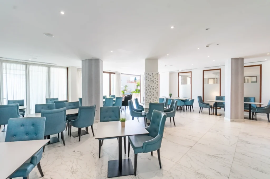 The complex features an impressive entrance lobby with concierge service, along with premium facilities including a spa, indoor swimming pool, fully equipped gym, and cafeteria — ensuring comfort and convenience all year round.