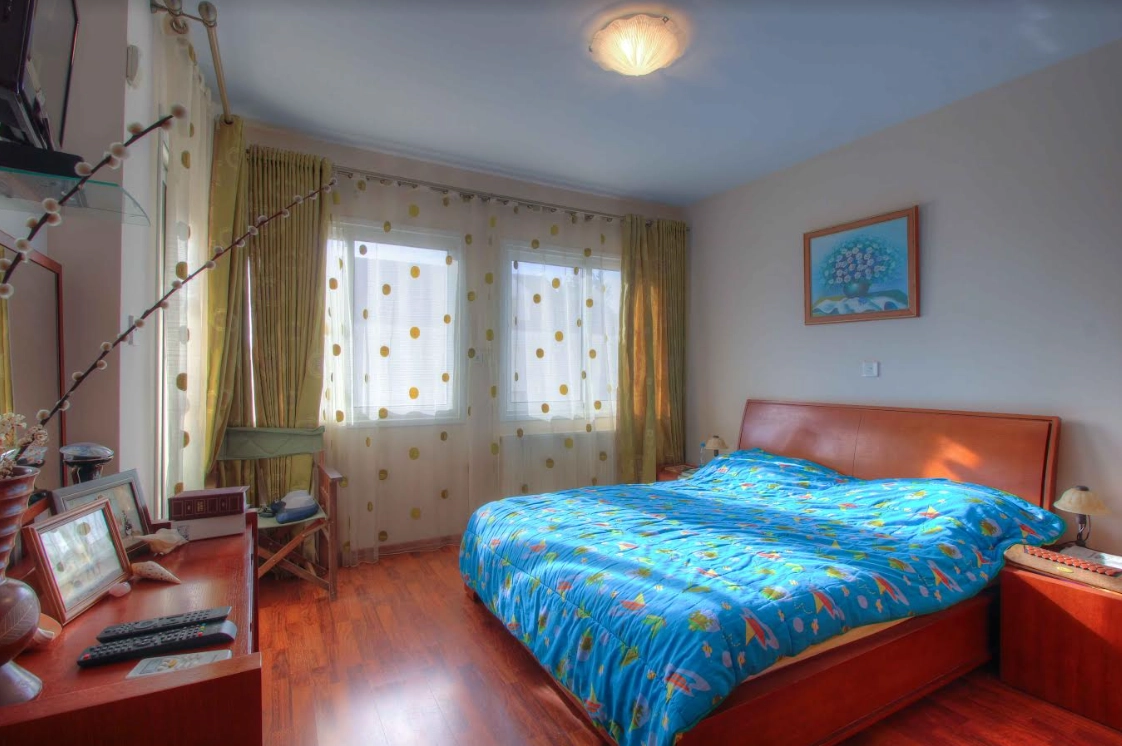 Outside, the villa features a meticulously landscaped garden, where lush palm trees sway in the gentle sea breeze. A private swimming pool beckons for refreshing dips on hot summer days, while a shaded terrace offers the perfect spot for al fresco dining or lounging in the shade.