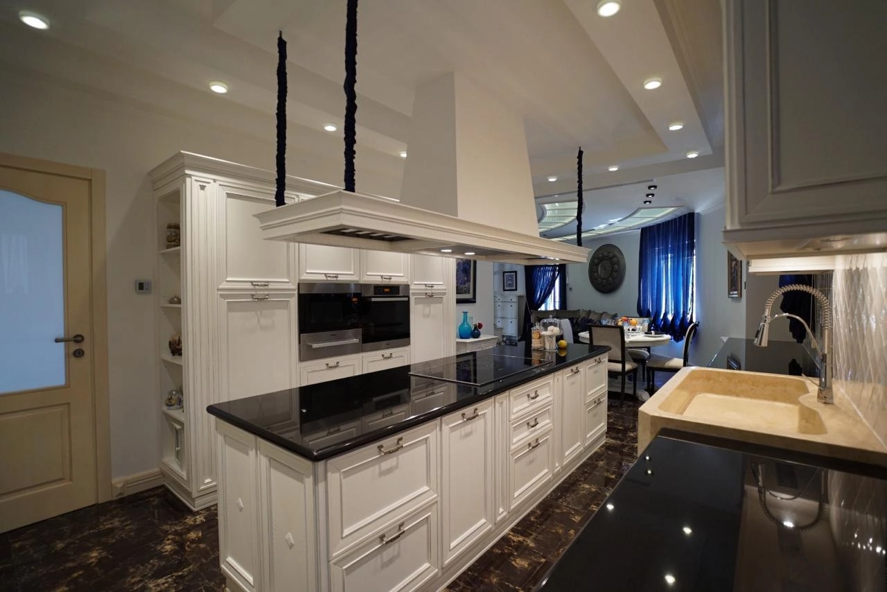 Bedroom, bathroom, kitchen, and living room. Custom furniture, doors, and kitchen.