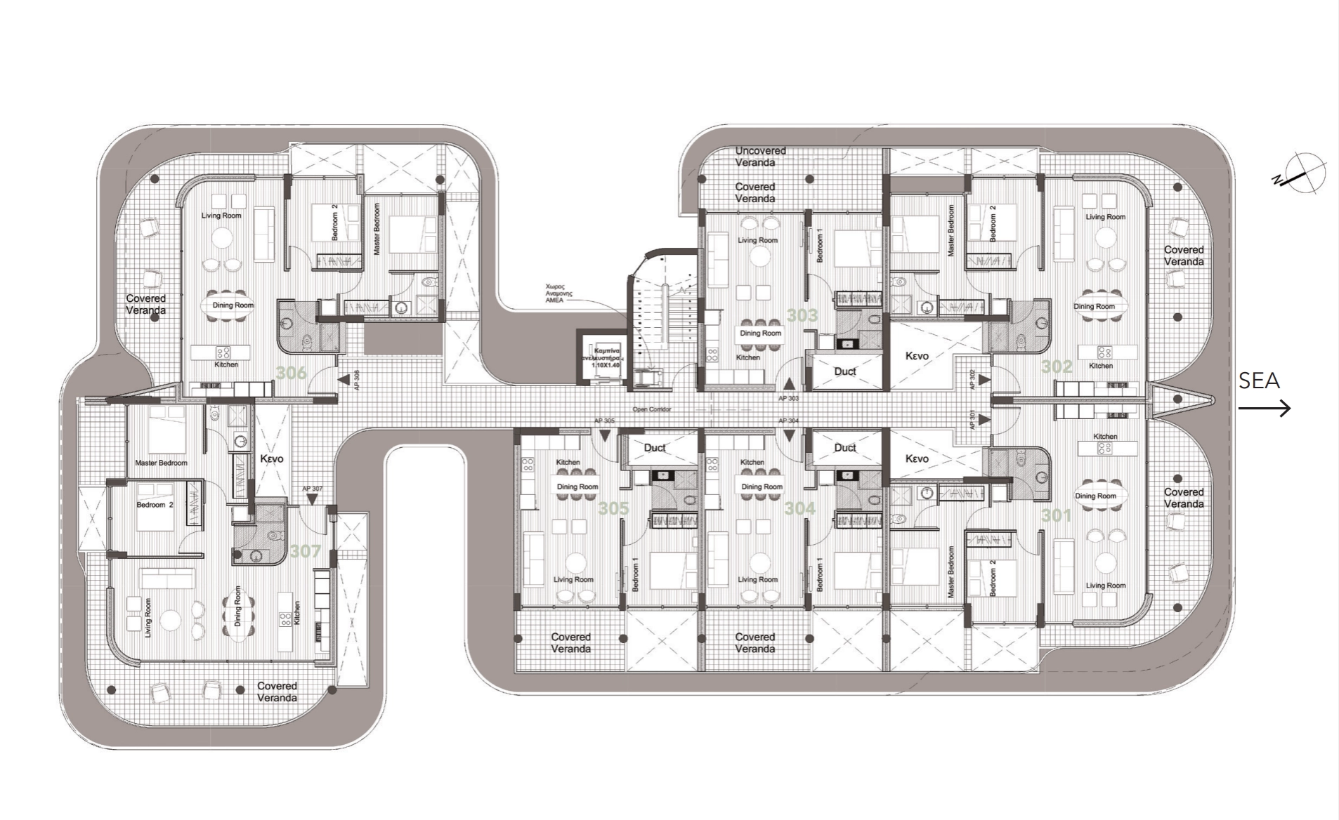 Designed for individuals or couples, the one-bedroom apartment combines intimacy with refined style. The open-plan living and dining area maximizes space, flowing seamlessly onto a private balcony where residents can enjoy morning coffee or evening relaxation. Large windows ensure that the interiors are bright and welcoming throughout the day.