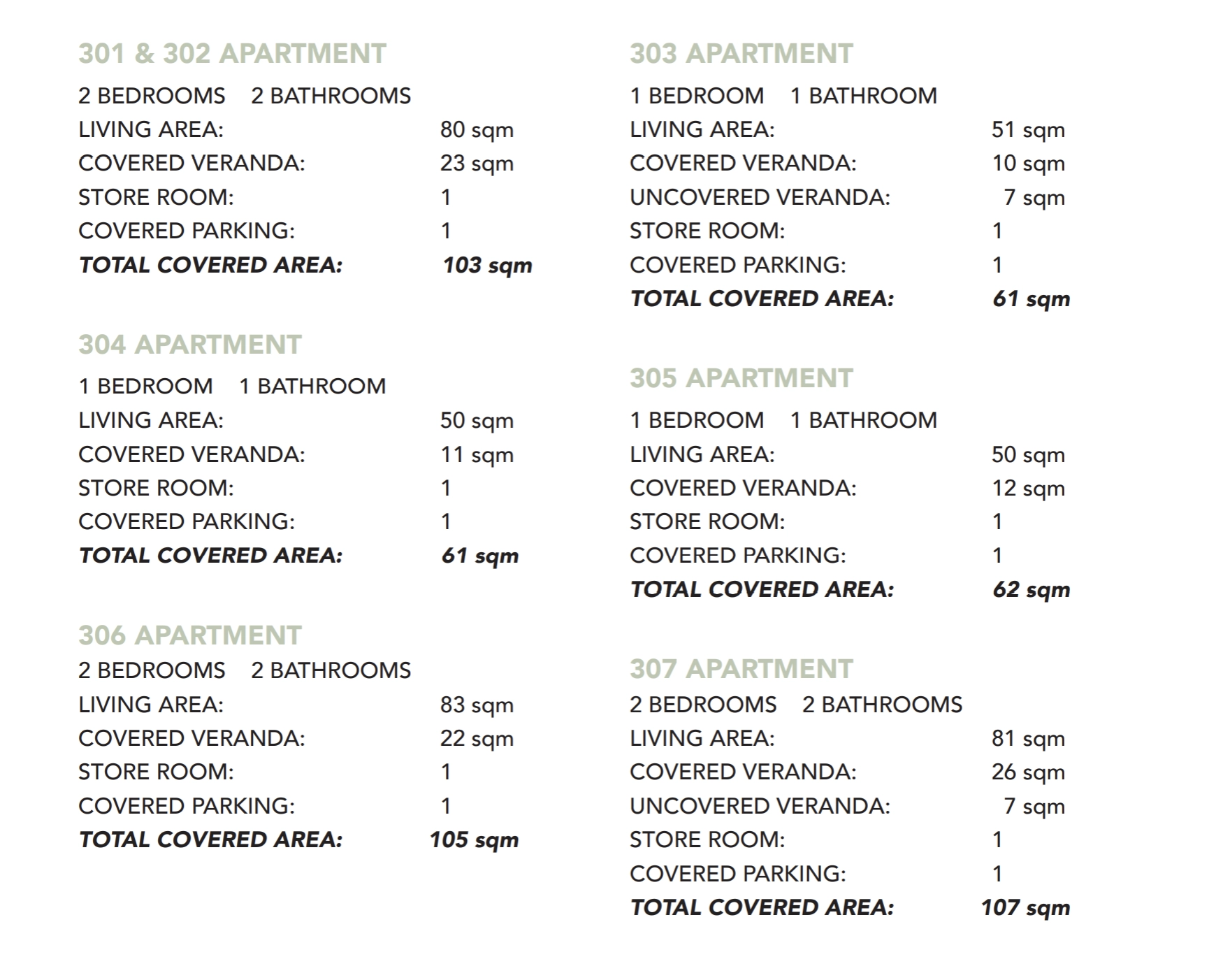 The bedroom is a calm and private retreat, with built-in wardrobes and elegant finishes. The bathroom is fitted with European ceramic tiles, walk-in shower, and illuminated vanity mirrors, creating a modern spa-like atmosphere. Kitchens are individually designed with granite worktops, under-mounted sinks, and chrome-finish fittings.