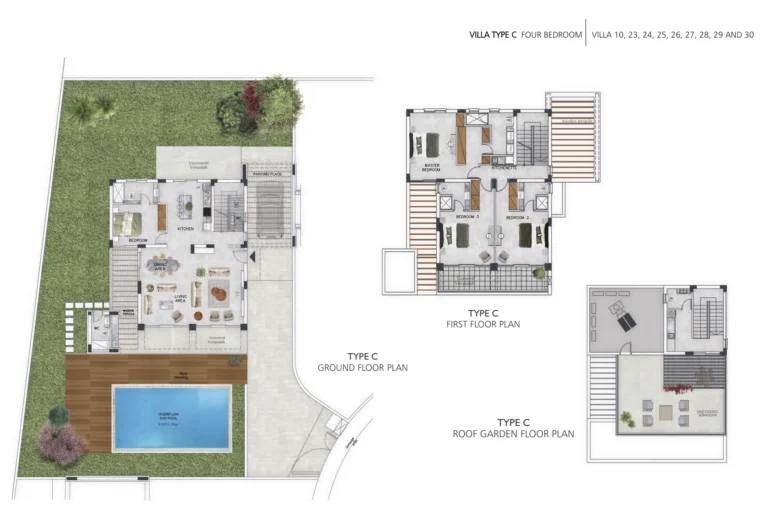 Located in the heart of the tourist area, and within walking distance to the sea, offers potential buyers the option of three, four or five bedroom detached homes in lush, green surroundings. Characterised by their aesthetic charm and unique architectural design, these spaciously comfortable homes are a perfect marriage of modern and traditional elements, creatively incorporating the use of wood and stone in their design.