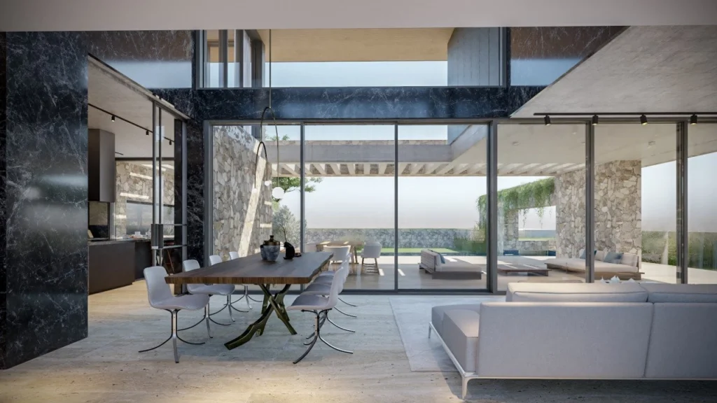 Residences comprehends an open plan space living and dining room along with a semi open plan kitchen area, outdoor relaxation area and dining space next to the infinity swimming pool.