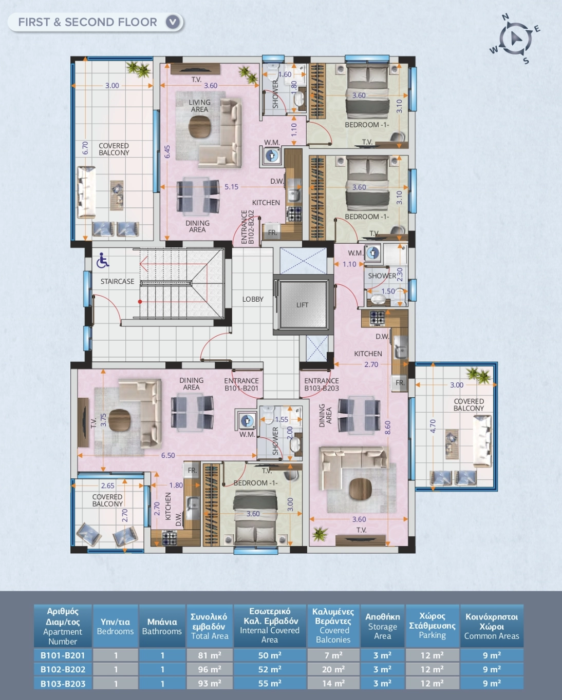 Residents benefit from covered parking and a private storage room on the ground level, as well as easy access to all nearby amenities — from supermarkets and schools to the city center and Larnaca’s main highways.