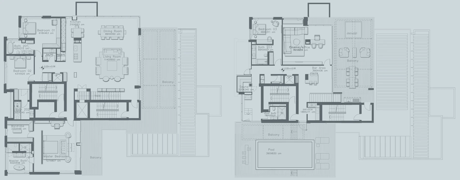 Huge 440 М2 patio and panoramic windows. The jewel of this Residence is a luxurious terrace that gathers all the warmth of the Cyprus sun. Swimming pool, jacuzzi, dining area, a massive deck of Burmese teak on the verandas – the best place to enjoy sunrises and sunsets on the Mediterranean.