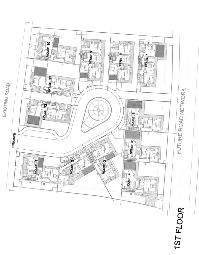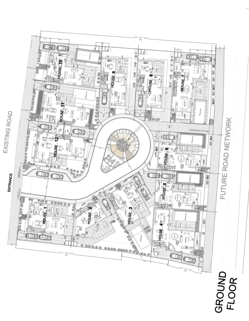 This cul-de-sac development offers 12 elegant two-storey houses that perfectly marry contemporary design with the tranquility of rural living. Each home features open-plan living spaces, modern kitchens, and private outdoor areas poised for personalization, such as gardens or pools. Large windows frame the beauty of nature, while the master bedrooms with private balconies become havens of peace.