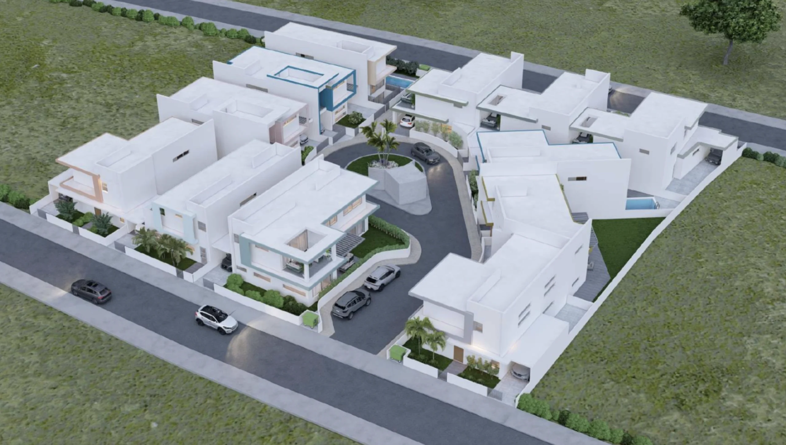 This cul-de-sac development offers 12 elegant two-storey houses that perfectly marry contemporary design with the tranquility of rural living. Each home features open-plan living spaces, modern kitchens, and private outdoor areas poised for personalization, such as gardens or pools. Large windows frame the beauty of nature, while the master bedrooms with private balconies become havens of peace.