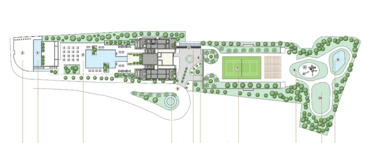 Penthouse for sale in a luxury residential complex in the center of Limassol, in a prestigious and quiet area of the tourist area, about 500 meters from the sea. The height of the structures reaches 8 floors. The structures of the buildings are designed in such a way that they encircle the landscaped garden located in the center of the project itself. There are also beautiful and spacious park areas for walking around the complex. The design idea is based on the principle of interaction of two elements – natural nature and the world created by man. The building has a stepped shape, in its visual concept resembles the silhouette of a grandiose yacht, where the terraces of each floor descend according to the cascade principle: from the highest point down. A striking element of the architecture is the wide balustrades that encircle each floor, thereby emphasizing the use of horizontal lines in the design. All residents will be able to enjoy the privacy of a gated complex with hotel infrastructure, including concierge service, SPA, outdoor swimming pool, indoor heated pool, gym, landscaped gardens, playground and a children’s club with a playroom.Main advantages:a landmark architectural project of one of the leading London bureaus;500 meters from the sandy beaches and infrastructure of the popular tourist area of Limassol;internal infrastructure of the hotel type: outdoor swimming pool, indoor heated pool, SPA, gym, concierge services, club locker room, underground parking, large landscaped gardens, playground for children;high ceilings (3.15 m);high-quality finishing materials (parquet, 2.4 m high doors, safe entrance doors, thermo-aluminum window frames, high-quality built-in furniture, plumbing);water underfloor heating and VRV air conditioning.This penthouse is located on the third floor and includes:Bedrooms: 3Bathrooms: 2Covered veranda: 105 m2Outdoor veranda: 22 m2Shared swimming pool