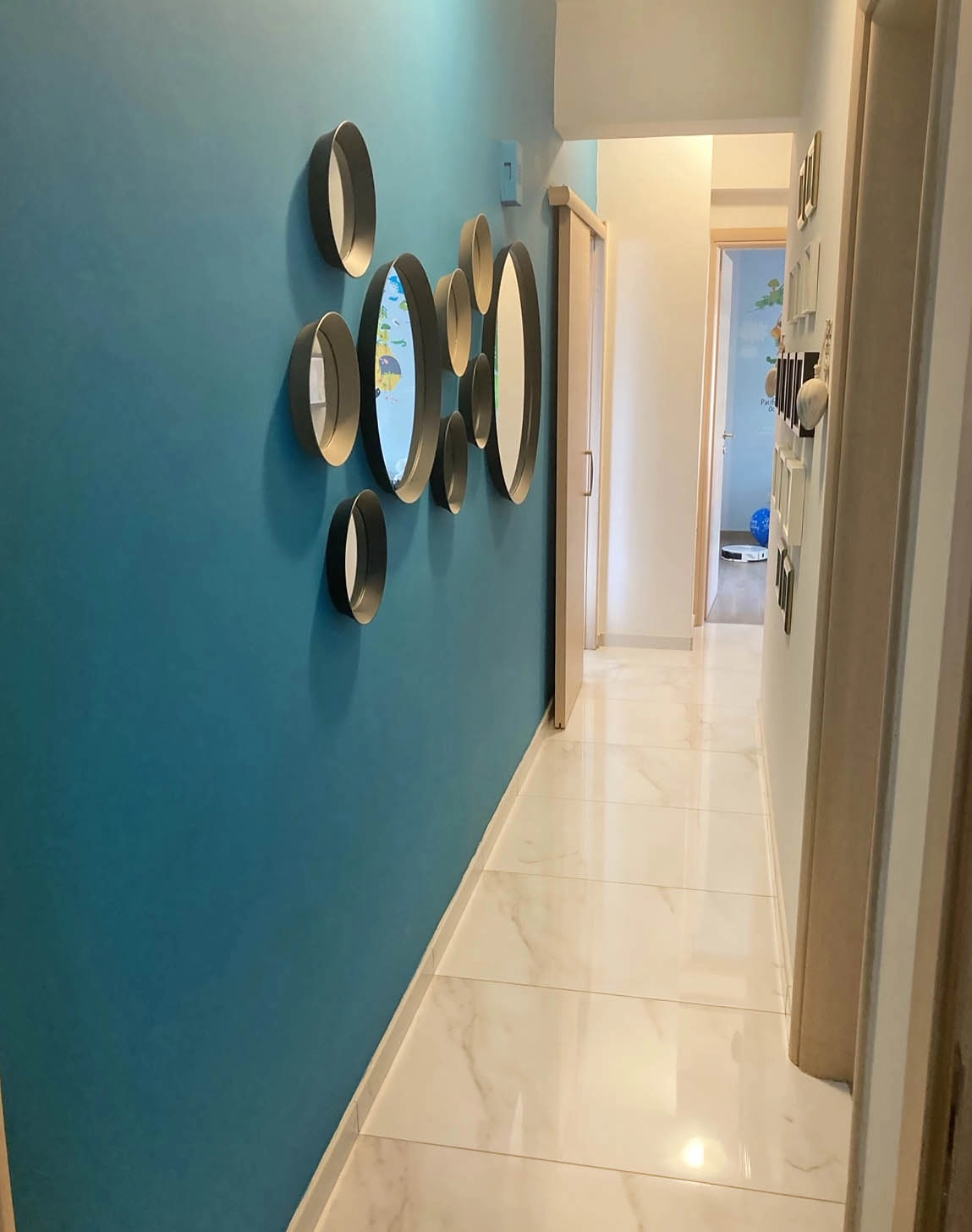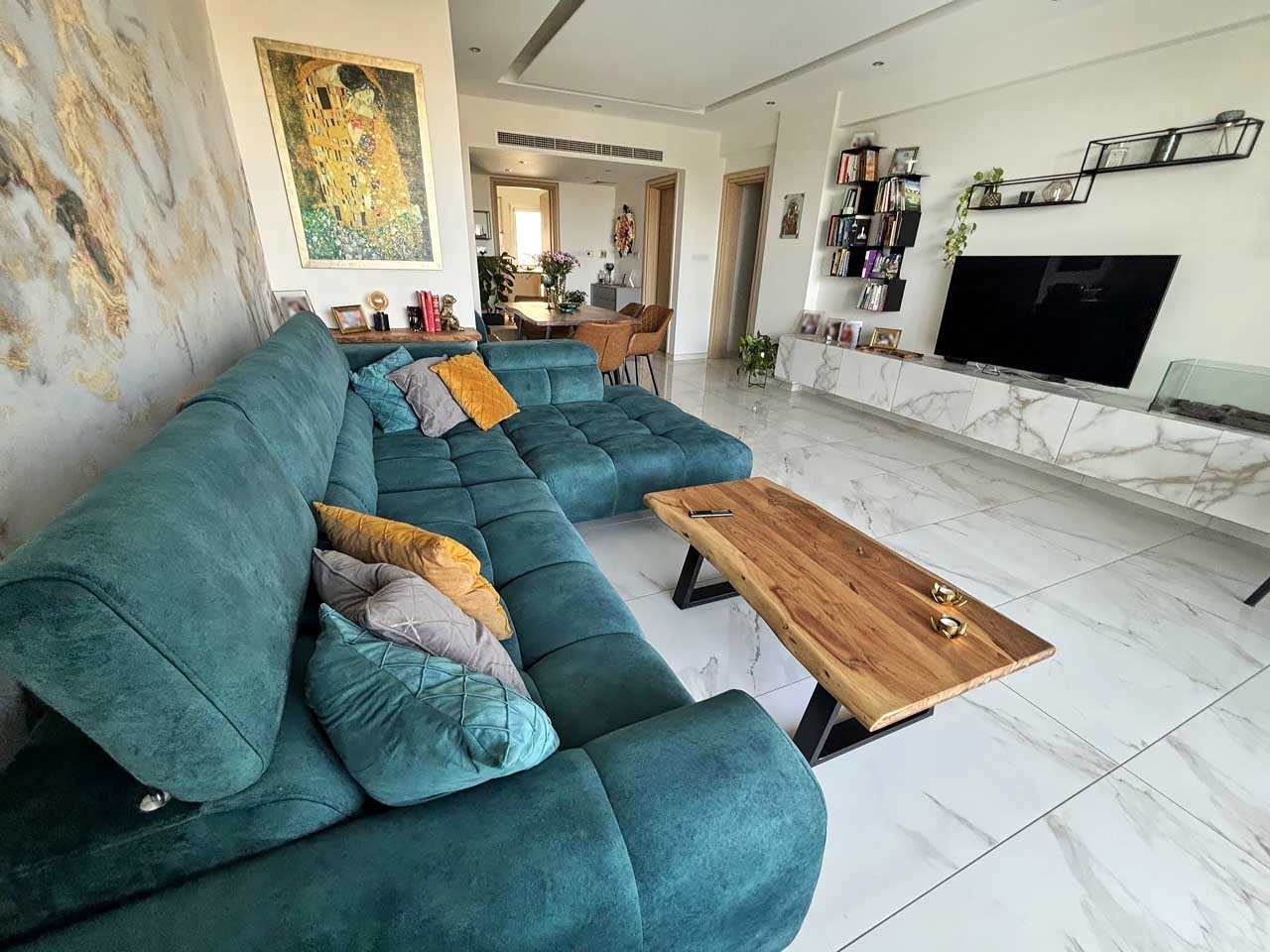 This recently renovated (2021) apartment offers a blend of comfort and elegance. Located next to a serene green area and perched on a hill, the home provides beautiful, unobstructed views. The spacious living area features a stylish bioethanol fireplace, creating a warm and inviting ambiance.