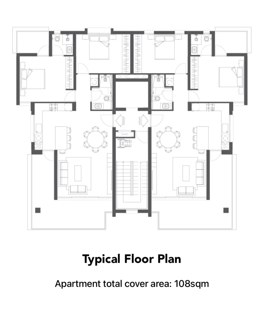 Every apartment is finished to the highest standards, with premium ceramic or parquet flooring, modern sanitary ware, and refined kitchen cabinetry that blend functionality with timeless elegance. Energy-efficient architecture ensures low energy consumption, while state-of-the-art electrical systems and high insulation standards enhance year-round comfort.