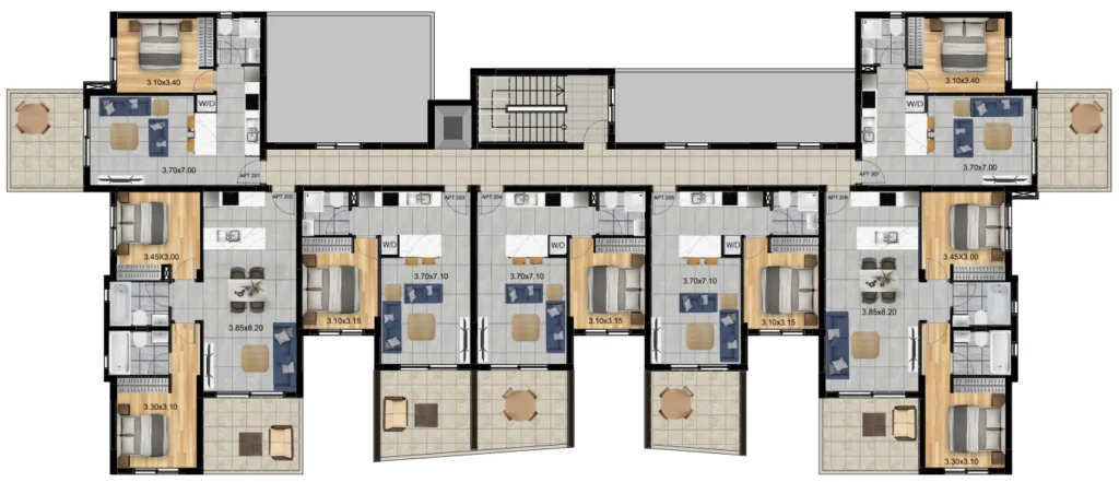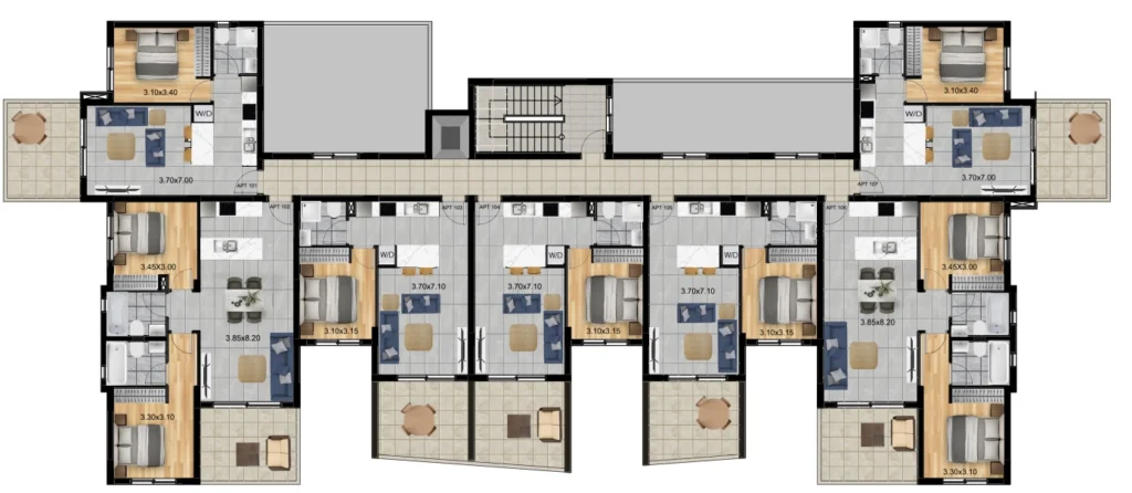 Apartments for sale in a new residential complex located in the prestigious Germasogeia area, Limassol. The complex offers 1- and 2-bedroom apartments with modern open layouts, large windows and private balconies providing maximum natural light and sea views. The bathrooms are equipped with luxurious fixtures, and each apartment includes a private covered parking space and a storage room. The project includes an outdoor swimming pool, a fitness center and maintains high standards of construction.