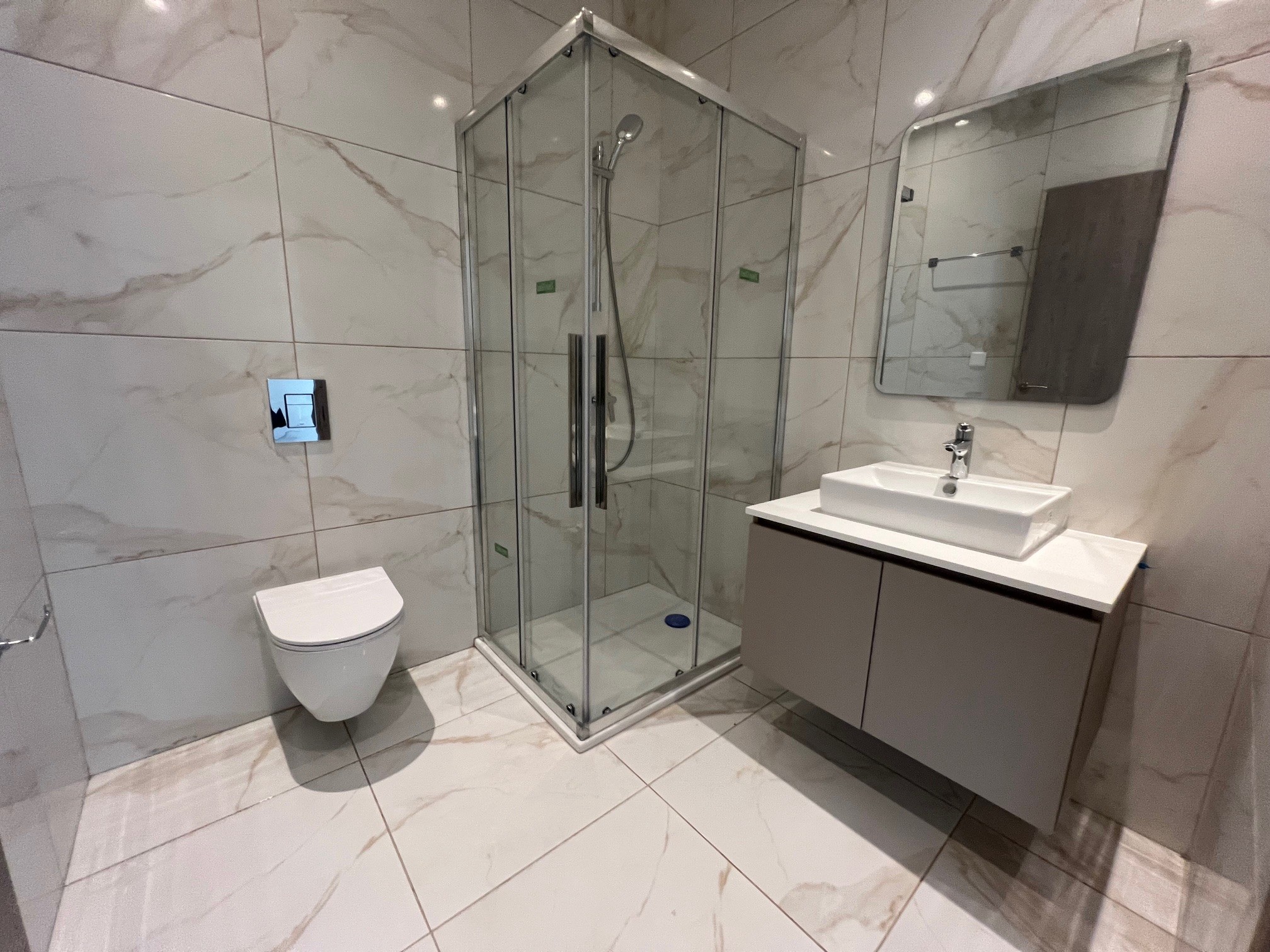 For sale brand new 1 b/r apartment with sea and city views located in a private gated complex on the hill in Agios Athanasios area, with easy access to the highway. The internal covered area is 60 sq. m + 16 sq. m covered veranda. It consists of an open-plan kitchen connected with a dining and living area, 1 bedroom and a shower. It has an air conditioning system, underfloor heating, panoramic double-glazed windows, solar panels for hot water and photovoltaic for solar energy, an intercom system, covered parking and storage.