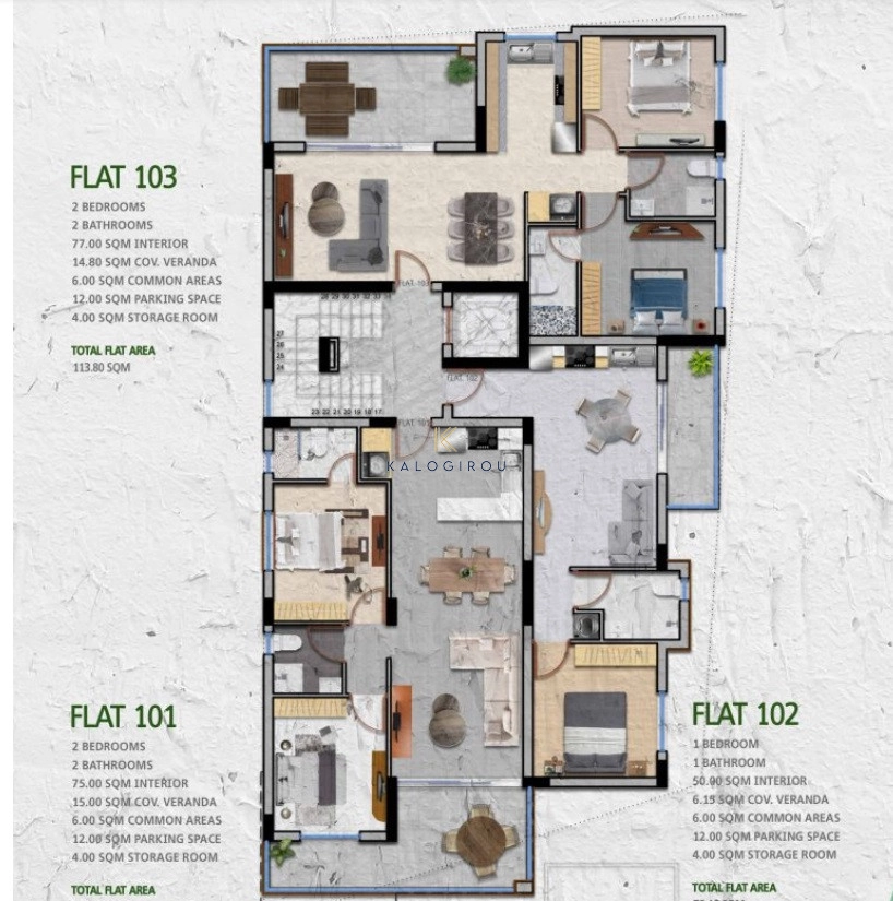 This beautiful and modern project has 6 apartments, three of them are two bedrooms & two bathrooms and the other three are one bedroom. The 2 top floor apartments enjoy private access to an amazing roof garden with an additional shower-w/c. It offers spacious verandas and each flat benefits from a storage room at the ground floor with a covered car parking.