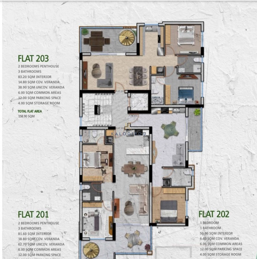 This beautiful and modern project has 6 apartments, three of them are two bedrooms & two bathrooms and the other three are one bedroom. The 2 top floor apartments enjoy private access to an amazing roof garden with an additional shower-w/c. It offers spacious verandas and each flat benefits from a storage room at the ground floor with a covered car parking.
