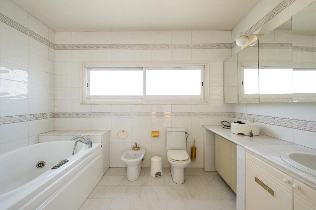 A two-storey Big House in Ekali area. The ground floor comprises a living room, dining room, bar, sitting room with fireplace, kitchen with dining room, laundry room, storage room, shower with a toilet and verandas.